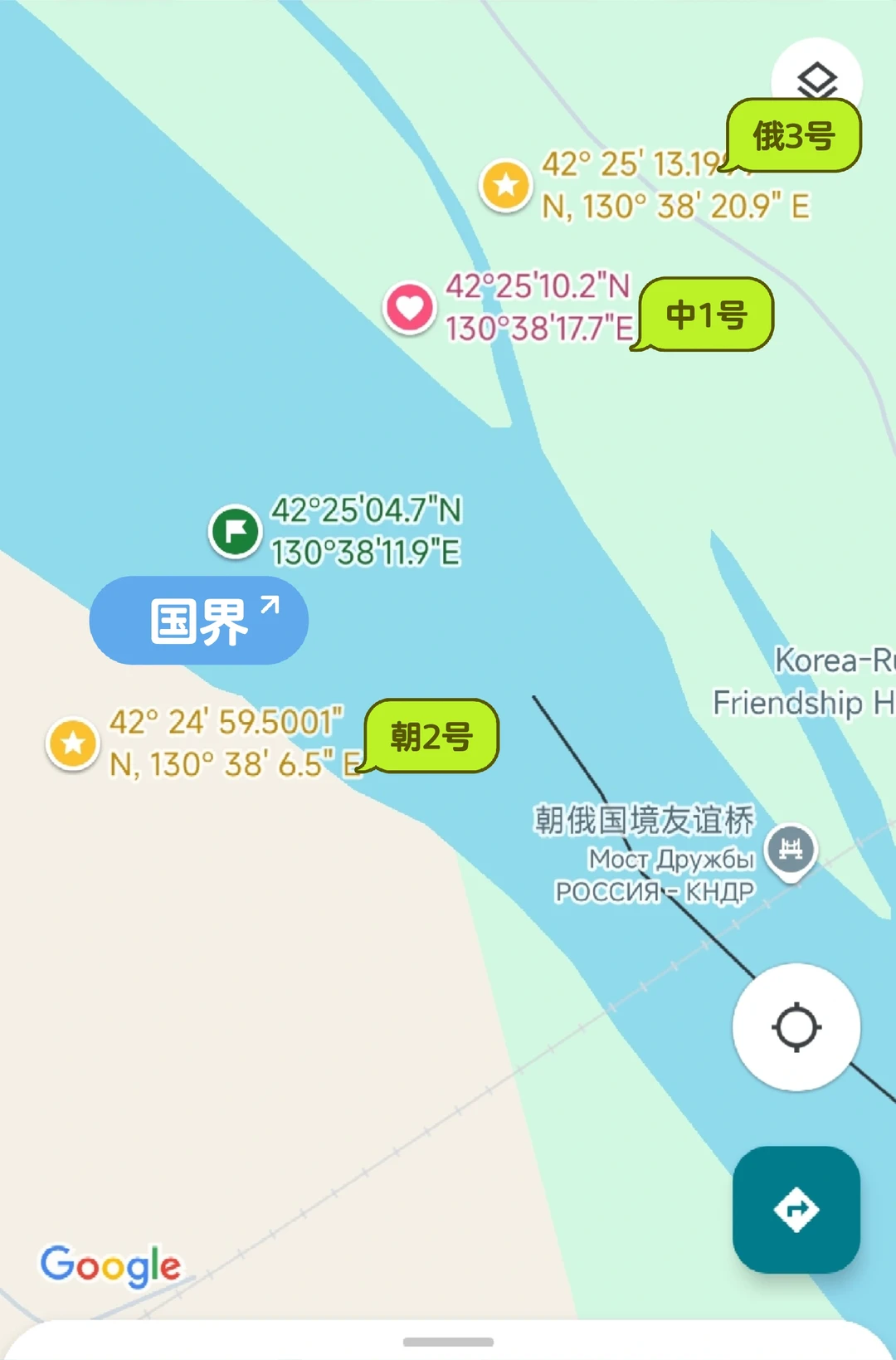 根据中朝俄协约原文经纬度绘出的界碑位置