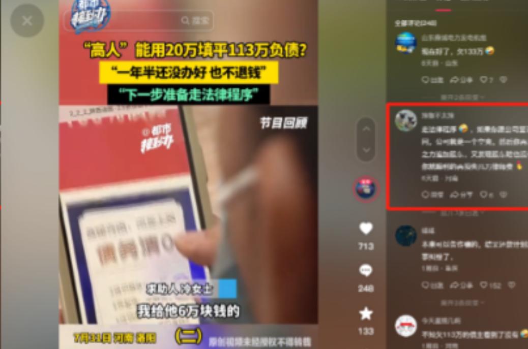 真是啥活都敢接”洛阳一女子投资失败,欠了银行113万,巨额债务压得她喘不过气来,于是在网上吐槽自己的失败,一名“高人”承诺只要90天和一点手续费,就能帮她还清巨额债务。后来女子相信了“高人”,现在女子怎么样了? 这名女子因为投资失误,不仅亏光了积蓄,还欠下了银行和各类网贷共计113万余元,其中涵盖信用卡欠款、消费贷、互联网金融贷款等多个品类。 每天睁眼就是催债电话、还款提醒,高额利息日复一日叠加,让她精神高度紧绷,既害怕被银行起诉,又担心征信彻底崩盘,走投无路之下,她只能在网上发视频、发帖子吐槽自己的遭遇,诉说负债的绝望,想找找同为负债人的共鸣,也盼着能有解决办法。 就在她情绪最低落的时候,一名自称专业“债务化解”的高人主动找上了她。对方语气笃定,先是共情她的遭遇,让她放下戒备,接着抛出了极具诱惑力的承诺:不用女子变卖资产、不用四处借钱,只需要支付一笔手续费。 再配合提供相关债务材料,90天内就能帮她彻底结清这113万巨额债务,甚至还说自己手上有大量成功案例,不少欠上百万的客户都靠他成功上岸。 深陷债务泥潭的人,往往很容易抓住这根看似救命的稻草。女子被百万欠款压得失去了判断力,压根没仔细甄别对方的资质,也没核实所谓成功案例的真假,就轻信了高人的鬼话。 高人先是以“前期服务费、合同工本费”为由,让女子转了6万元,接着又以“债务对冲保证金”的名义,哄骗女子凑齐20万元转过去,还拿出一份盖有不知名公司公章的合同,让女子误以为这是正规业务,彻底放下戒心。 交完钱之后,女子满心欢喜地等着90天期限到来,幻想着债务清零、重获自由的日子。期间她多次联系高人询问进度,对方要么以“正在走流程、银行审核慢”为由搪塞,要么让她耐心等待,绝不透露具体操作细节。 转眼过了约定的90天,女子的债务不仅没减少一分,银行的催款通知依旧不断,利息还在持续上涨,她再去找高人对质,对方开始找各种理由拖延,后来甚至态度大变,要么不回消息,要么直接推脱责任。 女子这才如梦初醒,意识到自己遇上了骗子。她辗转找到对方声称的办公地点,发现根本查无此公司,所谓的专业团队、债务化解资质全是编造的。 无奈之下,她选择报警求助,可因为双方签订了虚假合同,警方初步判定属于合同纠纷,建议她通过法律途径起诉。女子又试图联系对方协商退款,对方只是口头承诺分期返还,却一分钱都没兑现,彻底玩起了失联。 如今这名女子的处境愈发艰难,113万的债务本金一分未还,加上逾期利息和违约金,负债金额反而有所增加,之前转给骗子的26万元,要么是她四处借来的,要么是仅剩的生活费,这笔钱打了水漂后,她连基本生活都变得拮据,征信也因为逾期进一步恶化。 她只能一边收集证据走诉讼维权之路,一边打多份兼职勉强维持生计、偿还部分利息,想要追回被骗的钱款难度极大,只能默默承担轻信他人的后果。 其实这类债务化解骗局,套路都大同小异,骗子就是抓住了负债人急于摆脱债务的心理,用“零成本清债、短期上岸”等噱头诱惑人心。 先收取高额服务费、保证金,拿到钱后就敷衍拖延,最后彻底失联。他们根本没有任何化解债务的资质和能力,所谓的合同、成功案例全是伪造的,本质就是利用他人的困境实施诈骗。 对比市面上正规的债务处理方式,要么是和银行、网贷平台协商分期还款、停息挂账,要么是通过法律途径申请个人债务重组,全程都不会提前收取高额费用,更不会承诺“百分百清零债务”。 天上不会掉馅饼,看似轻松的捷径,往往都是暗藏陷阱的绝路,越是走投无路,越要保持理智,切勿病急乱投医。 这件事也给所有负债人提了个醒:遇到债务问题,一定要通过银行官方客服、正规法律服务机构等合法渠道解决,不要轻信网络上陌生的“高人”“专家”,凡是提前收取手续费、承诺快速清零巨额债务的,全是骗局。一旦被骗,不仅债务没解决,还会雪上加霜,陷入更深的困境。 负债不可怕,盲目轻信才可怕。面对困境,脚踏实地协商还款、努力赚钱才是正道,那些不切实际的捷径,终究只会让人摔得更惨。大家身边有没有遇到过类似的债务骗局?又是怎么防范的呢?
