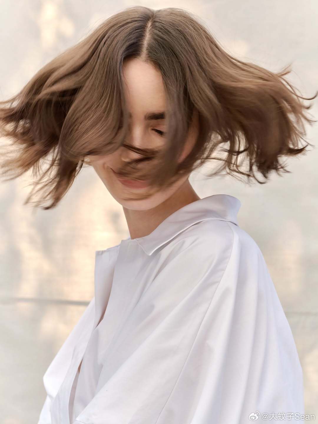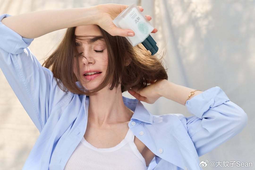 lily collins莉莉柯林斯为好友发型师Mara Roszak自创的美发品牌Roz拍摄的新宣传照释出,作为投资人之一的莉莉负责门面美貌