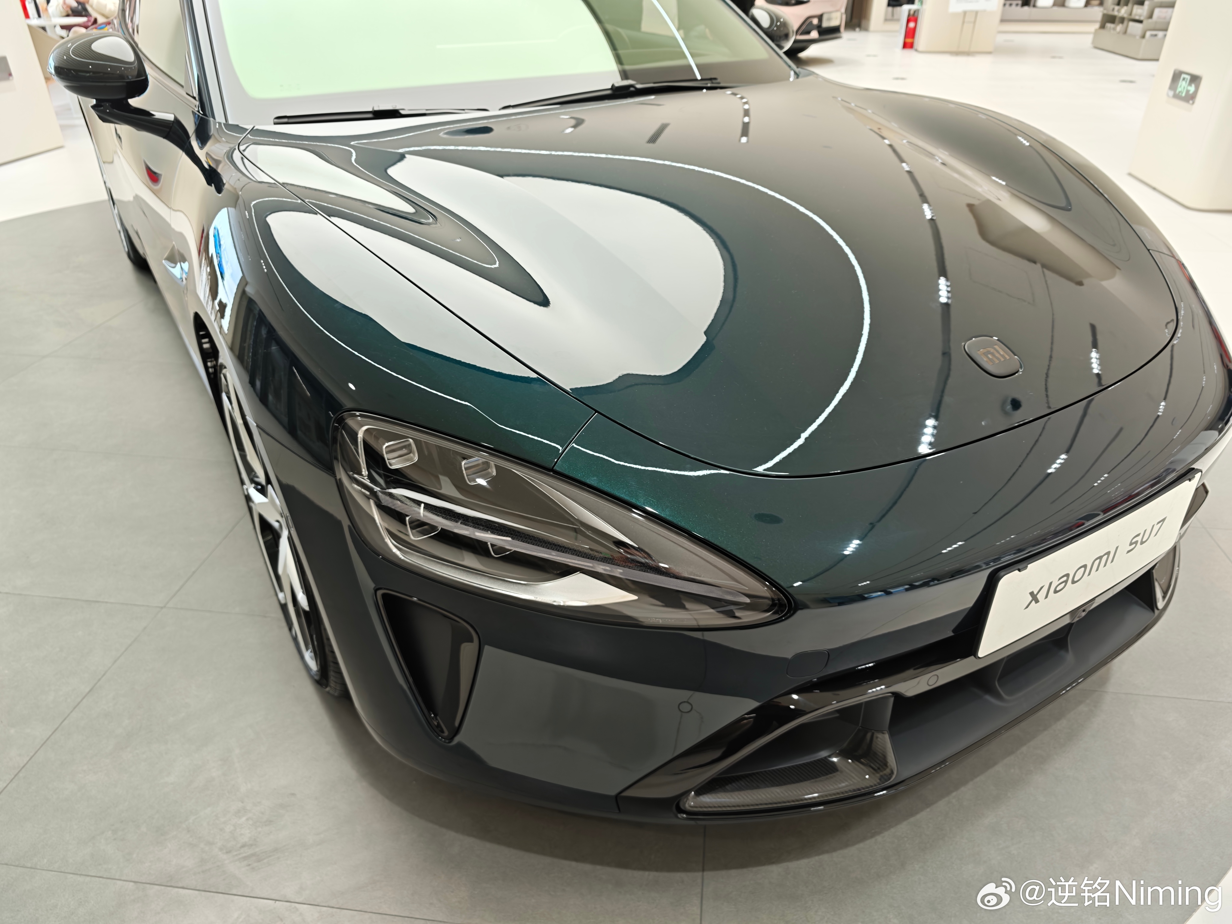 来店里看新SU7了 刚来店里,这个靛石绿我一眼看上去还以为是黑色,真的有点高级