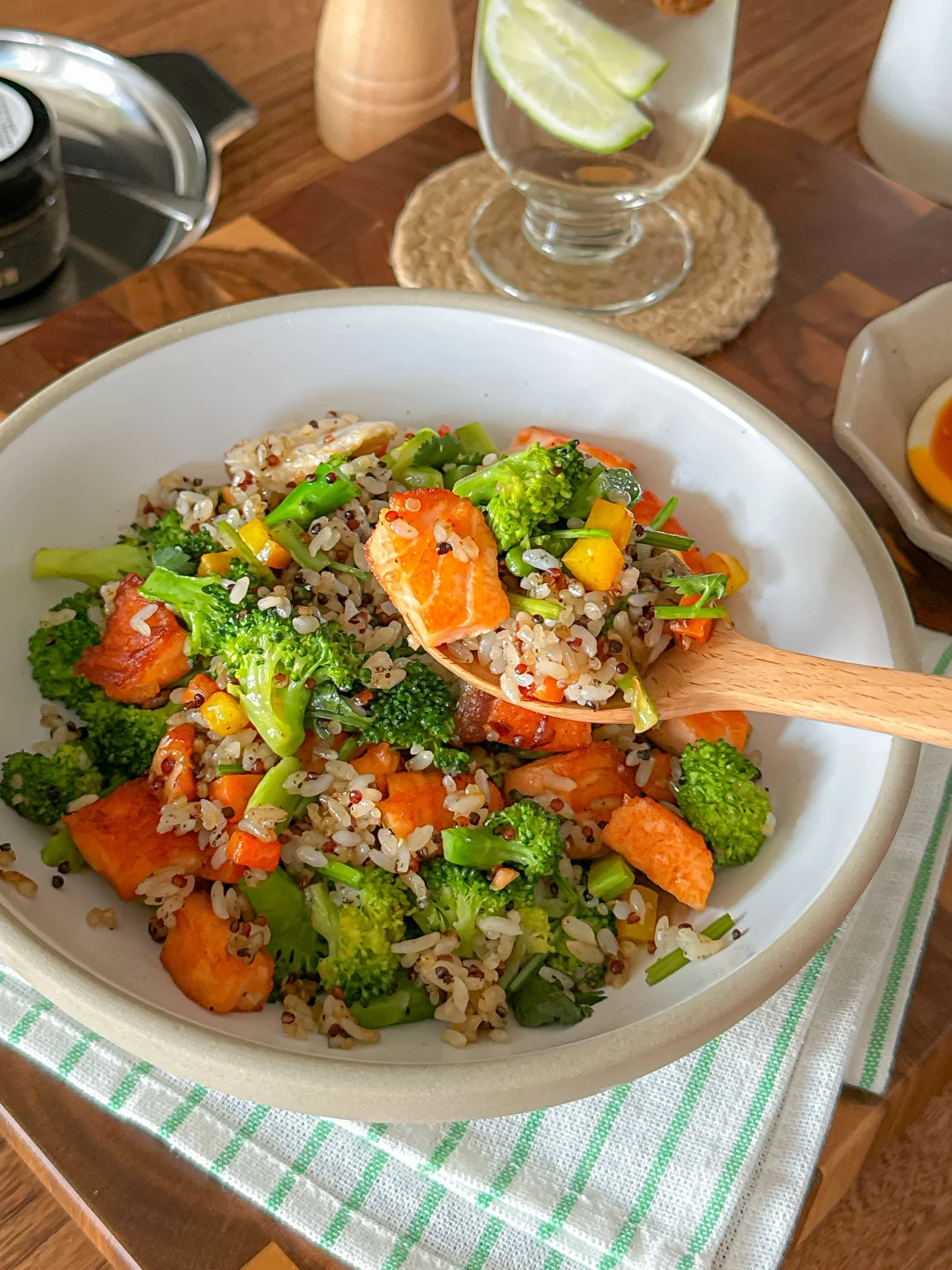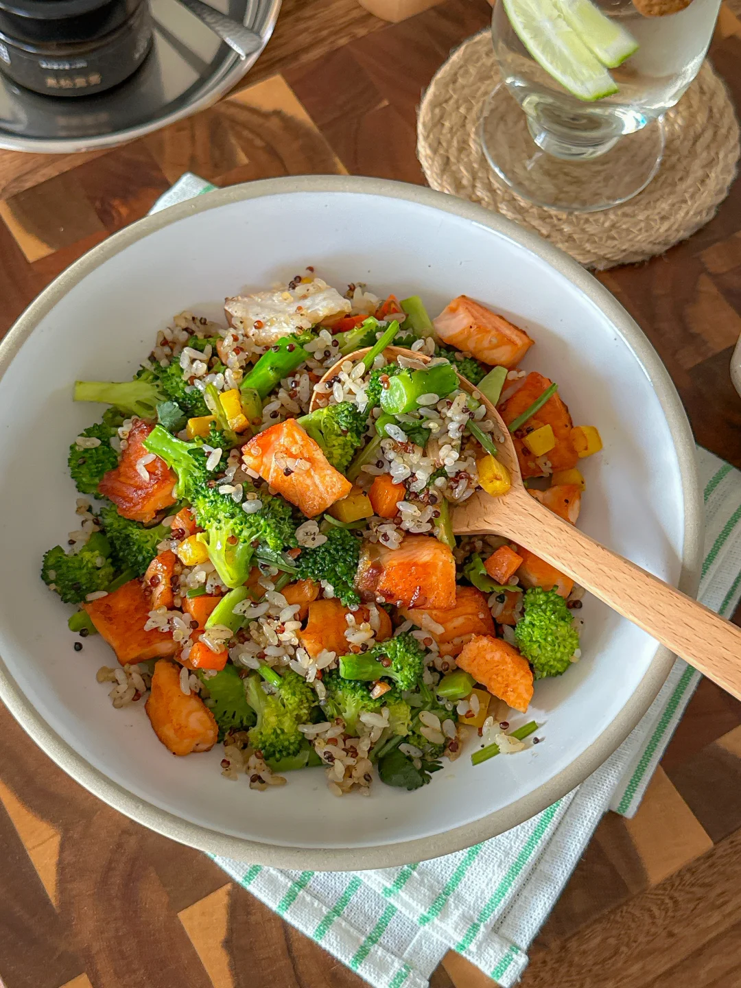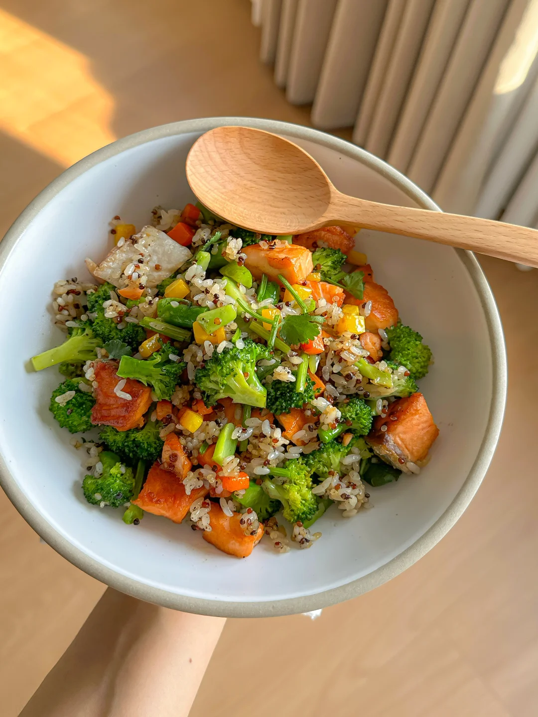 低卡美味的三文鱼西兰花🥦藜麦炒饭❗️