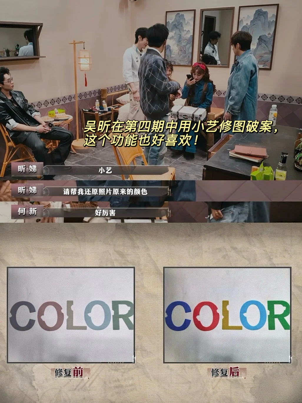 其实早在第四期,我就有注意到这款“探案神器”。当时吴昕使用小艺修图成功还原了老照片的颜色获得密码,问下了身边在用这款手机的朋友都说这个