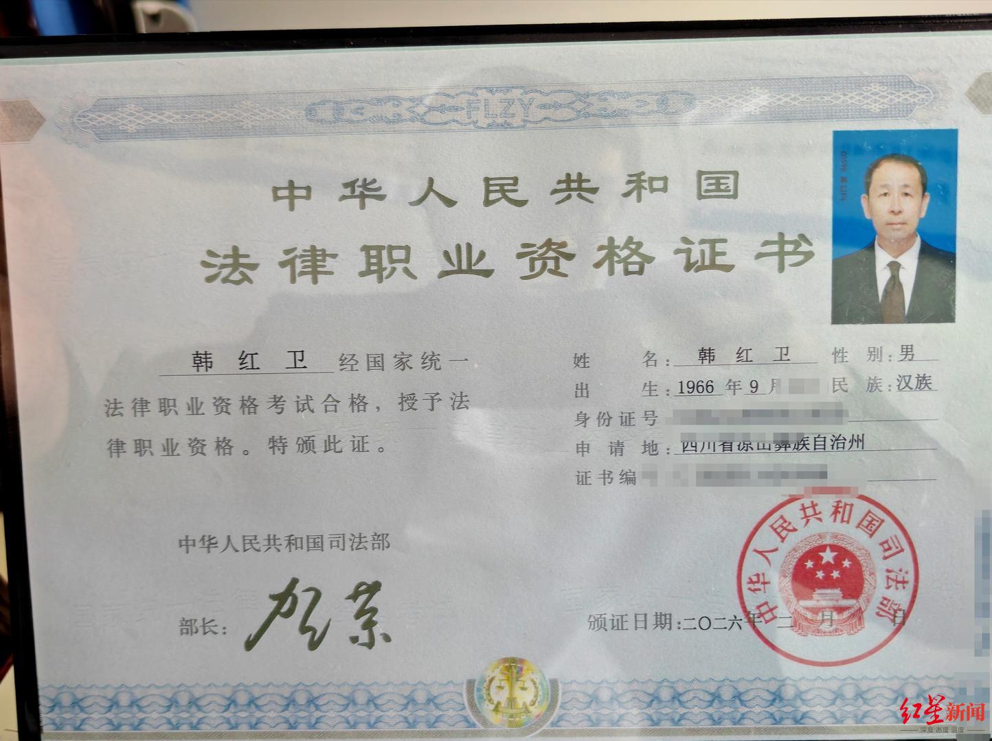 2026年3月,韩红卫领取了法律职业资格证书,这是他退休前收到的最好礼物。谈及未来,他满眼期待:“十年努力实现了自我突破,希望退休后能申领律师执业证,为凉山群众提供法律服务,继续发光发热。”他说,法考的意义,不仅是一张证书,更是备考中练就的坚韧意志,为自己的人生点燃一盏不灭的心灯。