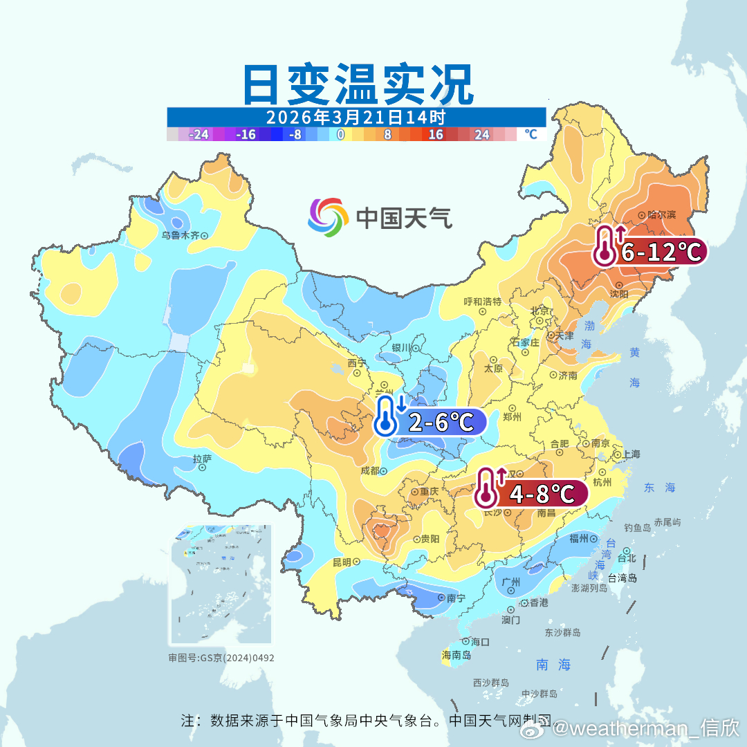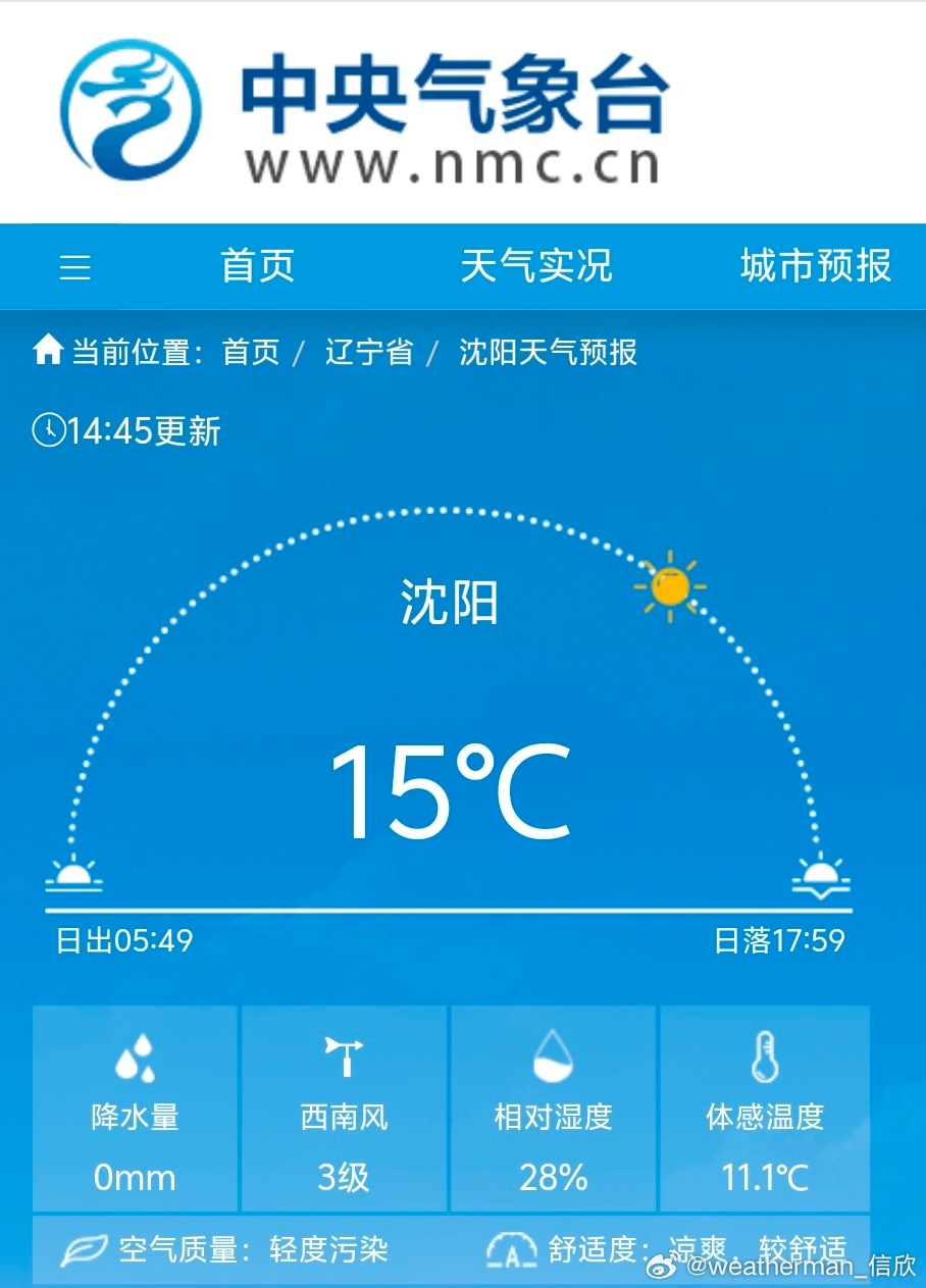 【升温】今天东北到江南多地普遍升温。东北升温尤其明显。截至14时最高,沈阳15.