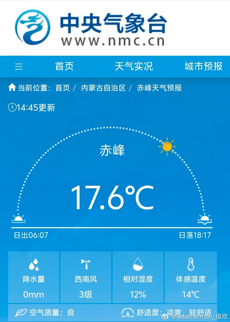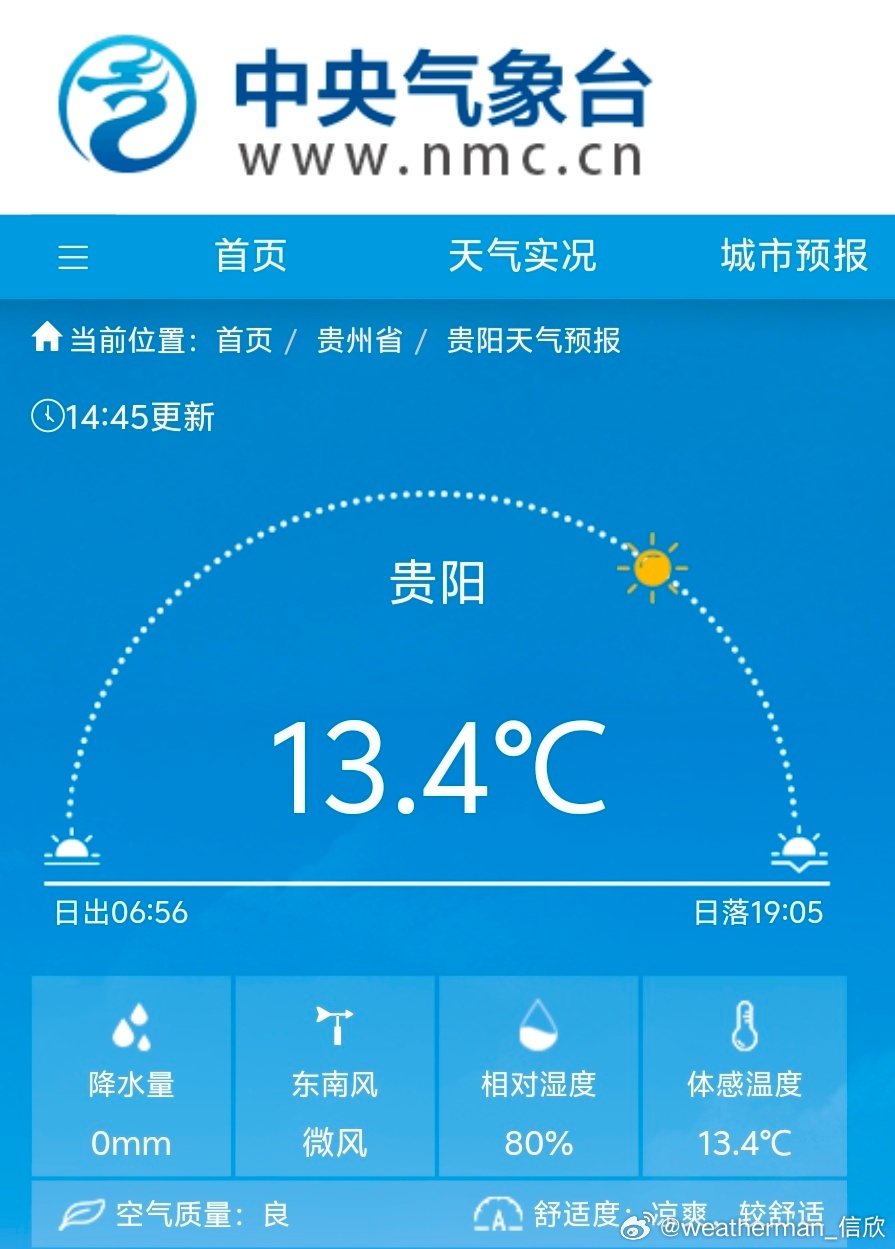 【升温】今天东北到江南多地普遍升温。东北升温尤其明显。截至14时最高,沈阳15.8℃,创今年气温新高。内蒙古东南部一带气温也超过15℃。而贵州湖南西部因为阴雨,气温较低,形成一个洼地,贵阳不到15℃,比同时次的赤峰和沈阳还低。