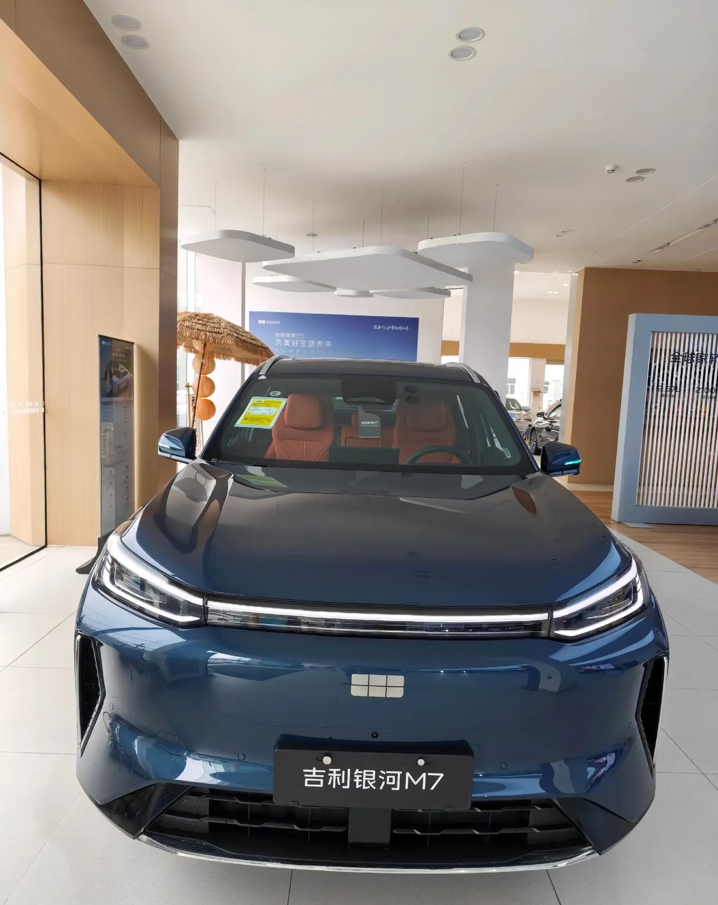 现在吉利银河M7很多地方都有展车了,确实漂亮,个人感觉车头部分有点像吉利银河M9,虽然说没有星空的那个灯带,但是该说不说,颜值确实高了,这次压力又给到比亚迪宋PLUS了。 因为这台车主打的就是年轻家庭,而且现在年轻人买车真的看颜值,比如说小米SU7,颜值高销量确实高,事实在这摆着,我感觉银河M7上了以后,爆的可能性很大。