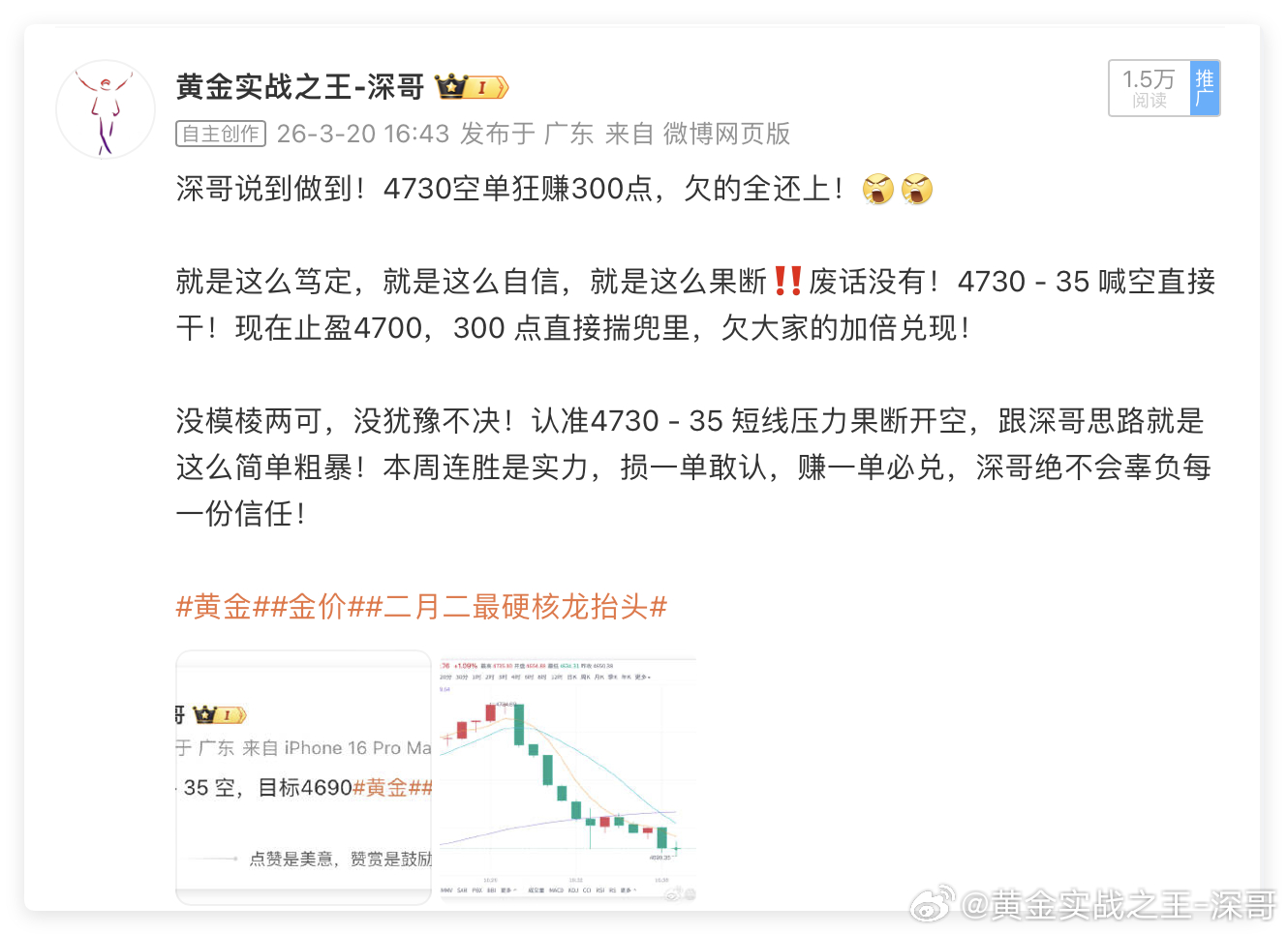 周五短线了结3单,收获80+美金!思路连续兑现!🔥这周深哥讲得最多的就是别抄底、别抄底、别抄底!!!咱不仅是这么说的,更是这么去做的,所以有了现在的优秀的成绩单。交易拼的就是眼光和执行力,认准点位、狠下心出手、守得住纪律,利润自然来。周五这波操作,对得起自己的分析,也对得起跟着深哥的铁粉们!金价也完全按预判走,到了目标位果断止盈,不贪多、不恋战,该吃的利润一点不放过!