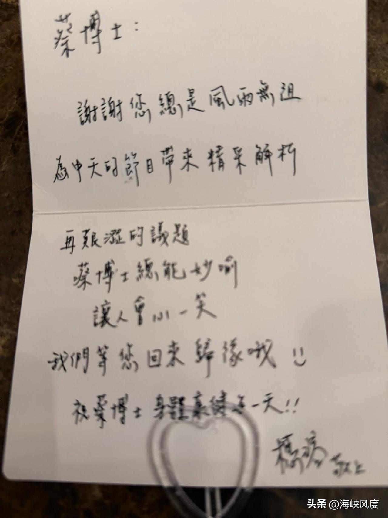蔡正元入犾前完成中天新闻“前进战略高地”最后一期录制,节目制作人寄语蔡正元:我们等你归队!蔡正元谢四人! 蔡正元今天在完成前进战略高地录制节目后,节目制作团队为蔡正元送上送行卡片,卡片上写道:“蔡博士:谢谢您总是风雨无阻,为中天节目来精彩解析,再艰涩的议题,蔡博士总能妙喻,让人会心一笑。我们等您回来归队哦[微笑],祝蔡博士身体健康每一天!” 随后蔡正元与节目团队以及同台嘉宾一一合影留念。蔡正元随后在脸书上贴出节目制作团献上的卡片,以及合影照片。蔡正元表示,感谢中天前进战略高地团队的鼓励,感谢主持人何橞瑢,感谢主持人郑亦真,感谢帅化民将军,感谢张延廷将军,感谢制作团队和摄影团队! 有网友留言抚慰道,两大美女都让您拥入怀中,无非是想要给您温暖,勇敢的蔡博士,我们等你回来,我们会向您看齐,继续坚强下去。 有网友加油道,蔡委员加油,我们的心与您同行! 也有网友发自内心的敬佩道,正元前辈,您的风骨与坚持,我们都看在眼里、记在心上。这段路走得艰辛,但您从未退缩,依旧为台湾的正义与两岸和平奔走。感谢您始终站在对的一方,我们一直守护您、支持您,等你平安归来,继续为这片土地发声!