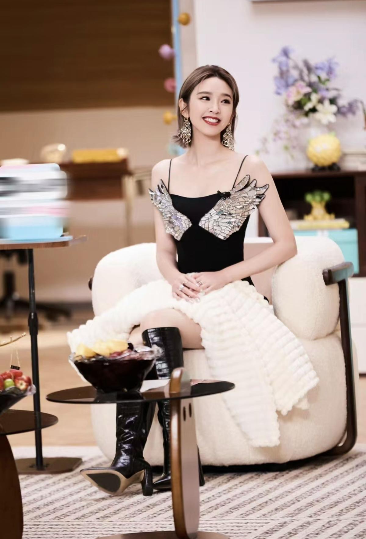 唐艺昕这身黑裙翅膀装也太绝了吧[兔年大吉] 亮片细节闪到心巴,酷飒又优雅,气场直