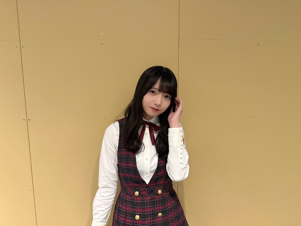 海邉朱莉「この前の乃木恋のイベント来てくださった方、ありがとうございました!「気づいたら片想い」の制服を着させてもらった〜前髪分けて巻いたりしてみた。…どうかな?すき?」