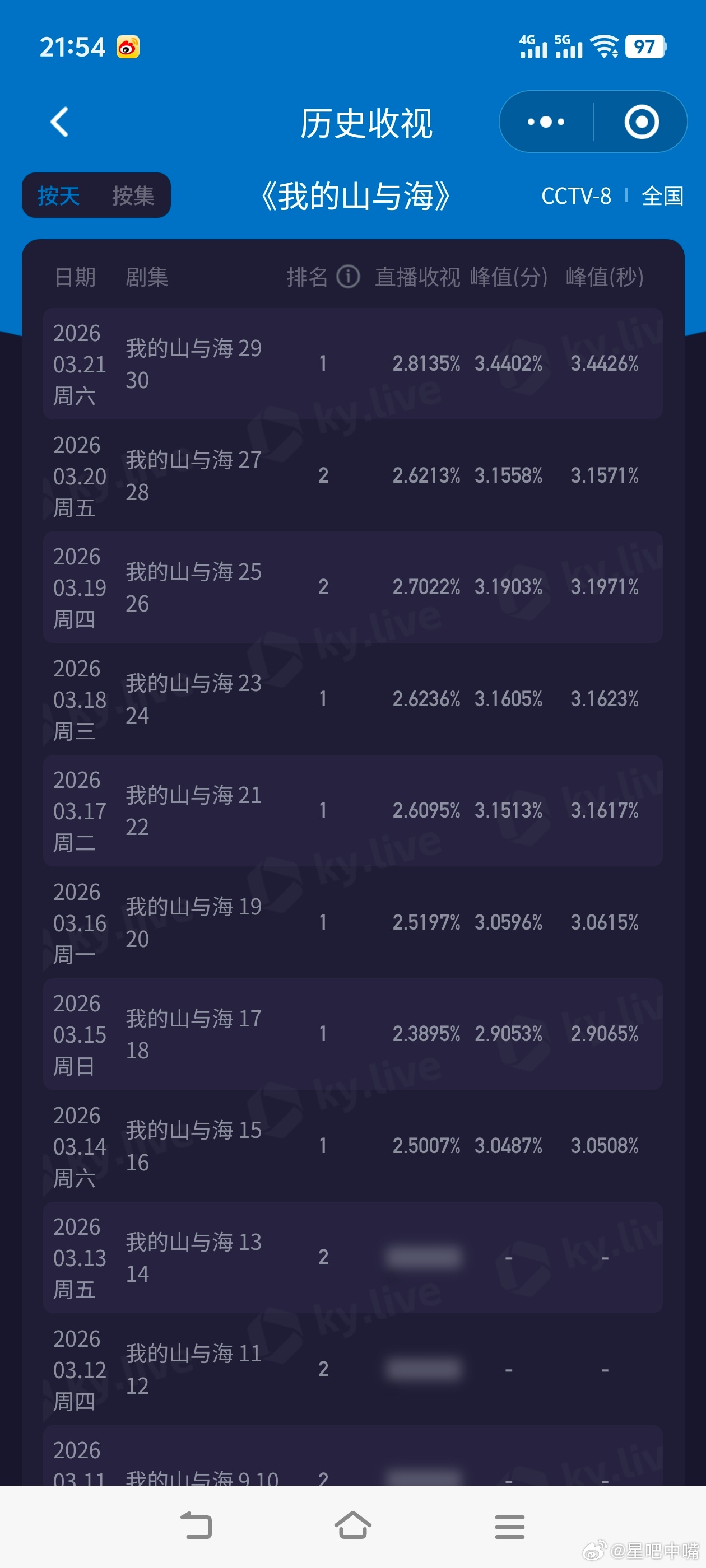我的山与海 谭松韵《我的山与海》周六大结局,酷云收视再创新高!峰值3.4426,