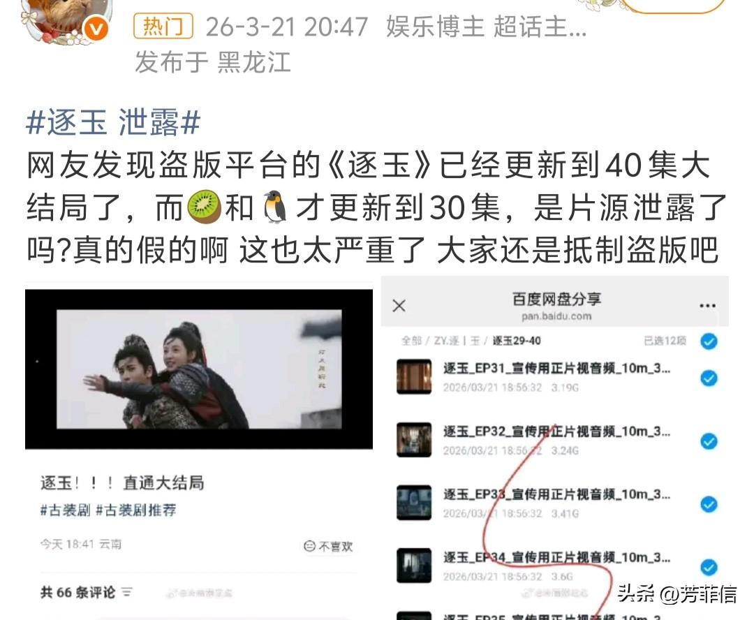 这世界就是个巨大的草班台子,《逐玉》播着播着又出幺蛾子了,全集提前泄露,直接引爆热搜…… 按官方追剧日历,《逐玉》会员收官得等到30号,超点的话应该是25号左右,如今全集在21号就提前流出了,这意味着节奏全打乱。
