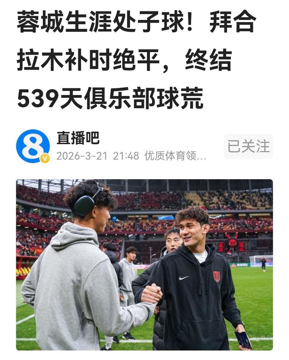 恭喜拜合拉木补时救主,时隔539天终于在中超又打进1球。但你要看这球咋进的,其戏剧性都说不清楚。 比赛打到92分钟,主场作战的铜梁龙3:2领先,龙粉在大唱赞歌、蓉迷准备痛哭。这时罗二娃开出角球旋向后门柱,声世豪高高跃起顶出头球,没想到居然把球顶在小拜背上弹进网窝,最终让蓉将比分扳成平局。 其实,拜合第59分钟早早上场当了王子铭的替补,但其跑位一度模糊,好不容易两次跑出位置,其射门却全部偏出,特别是最后时刻禁区外的远射打偏,运气也不在蓉城和拜合拉木。