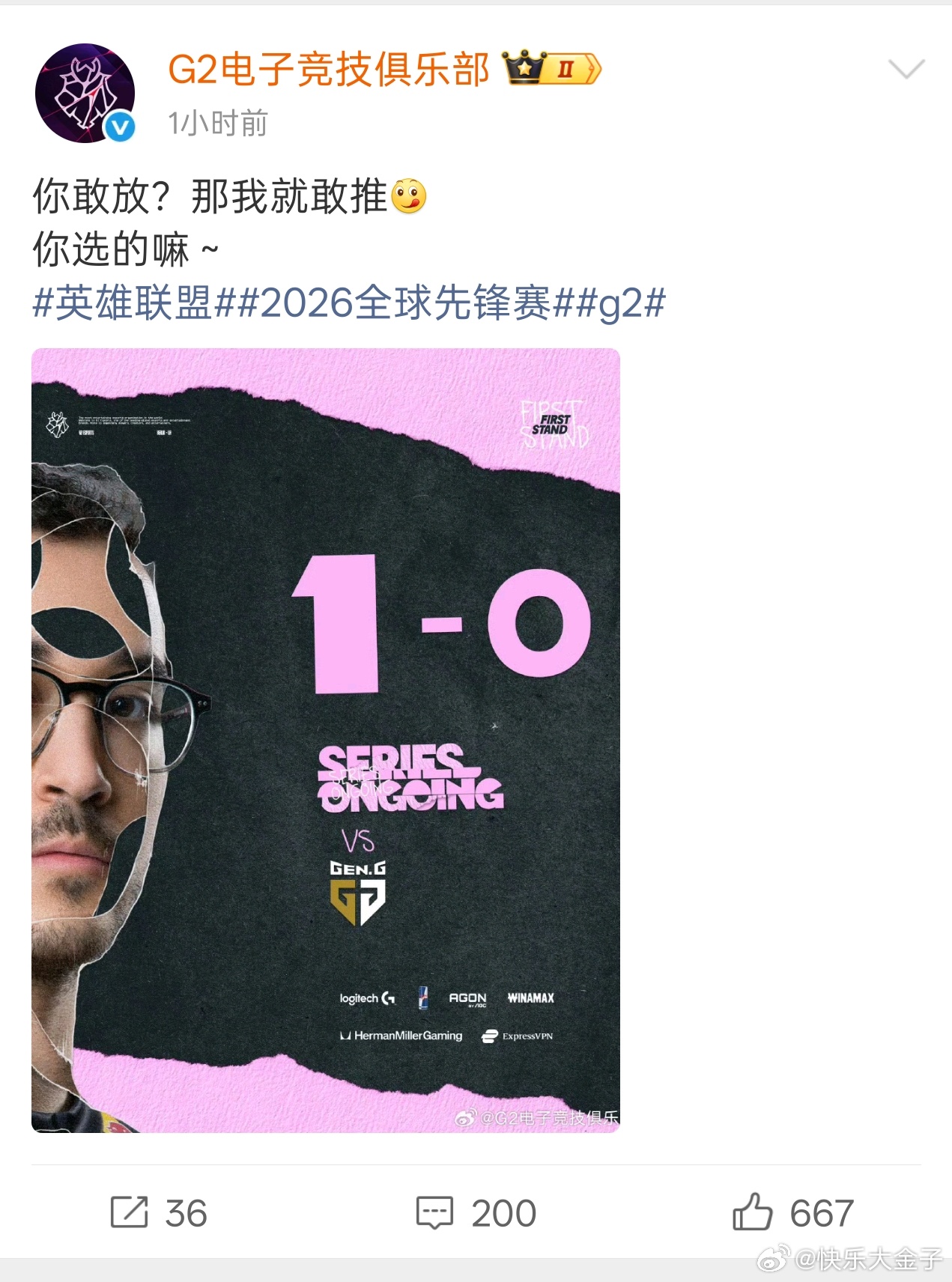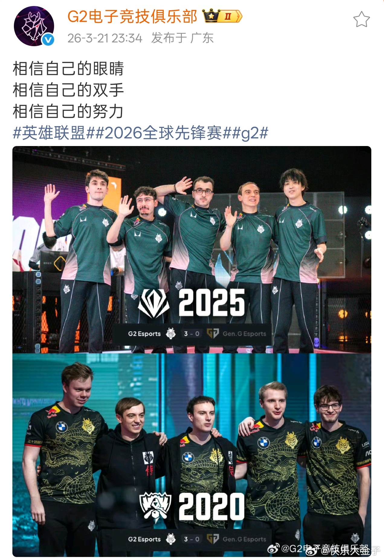 G2零封GEN,官博运营已经舞出九宫格了重铸LEC荣光,G2义不容辞。