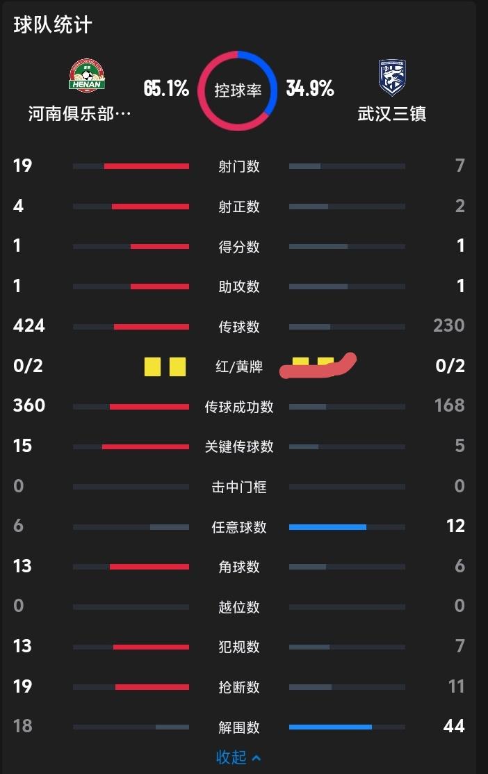河南最终主场和武汉三镇打成1:1平局,这样的结果对于河南来说有点无法接受,毕竟全场各项数据河南基本都是压倒性优势,结果却是平局!