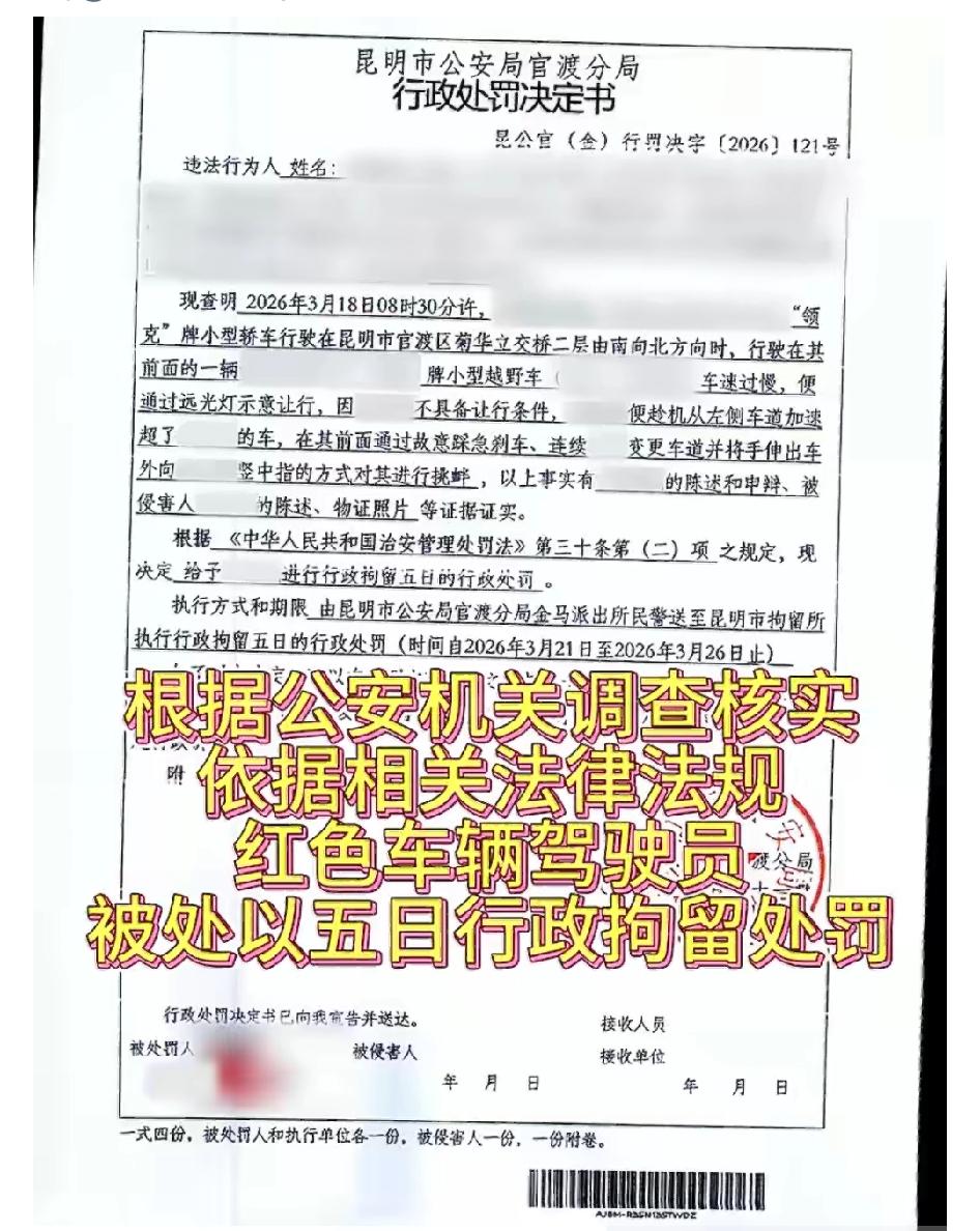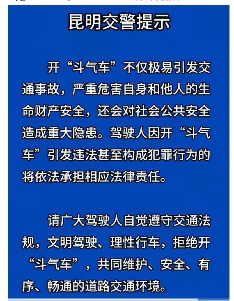 昆明这几起恶意别车事件太吓人了!市民朱师傅在金马立交附近,被红色领克多次恶意别车,对方超车后急刹,朱师傅只能左躲右闪,差点就出事故。还有网友在G320国道,被白色小车超车后反复急刹,也是险象环生。 好在昆明交警给力,接到举报就依法严处。开车上路,大家都有急事,但意气用事开“斗气车”,既违法又危害安全。遇到这种“路怒”司机,咱普通人要遵守“让速不让线”原则,也别忘了及时举报,让交警来收拾他们!