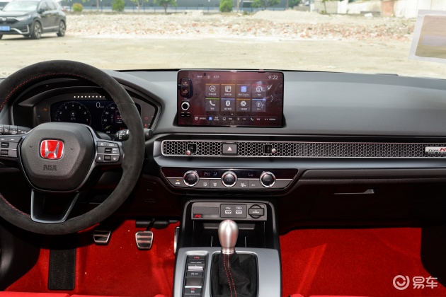 坐进车内,思域(进口)内饰造型看起来比较稳重,整体设计很简洁。该车方向盘造型非常时尚大方,采用了Alcantara/翻毛皮材质,造型十分的战斗。从中控来看,配合9英寸的触控式液晶中控屏,让内饰风格给人印象深刻,看上去十分的舒服。仪表盘和座椅同样让人眼前一亮,仪表盘设计可圈可点,运动氛围营造的比较到位。该车采用了Alcantara座椅,座椅宽大厚实,整体舒适度尚可。