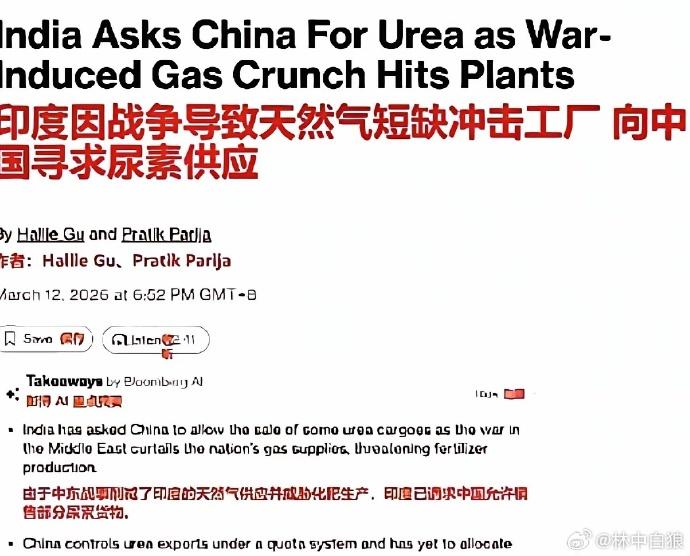 哦哟,三哥恒河水喝多真的神力无限啊。 因为没有尿素现在都开始警告我们了,要我们放开出口限制,要不然就会影响到印度的春耕…… 怎么感觉说得这是我们的事情一样,你们的春耕关我们什么事啊? 当年疫情期间,你们可以禁止棉花对我们出口的,这笔账你们还记得不? 虽然我们也不稀罕你们那点,何况可能带大肠杆菌。 但你们以前的那个态度让我们现在很为难啊。 要不你们再反思一下? 点右上角关注我,我们一起去看这个魔幻的世界
