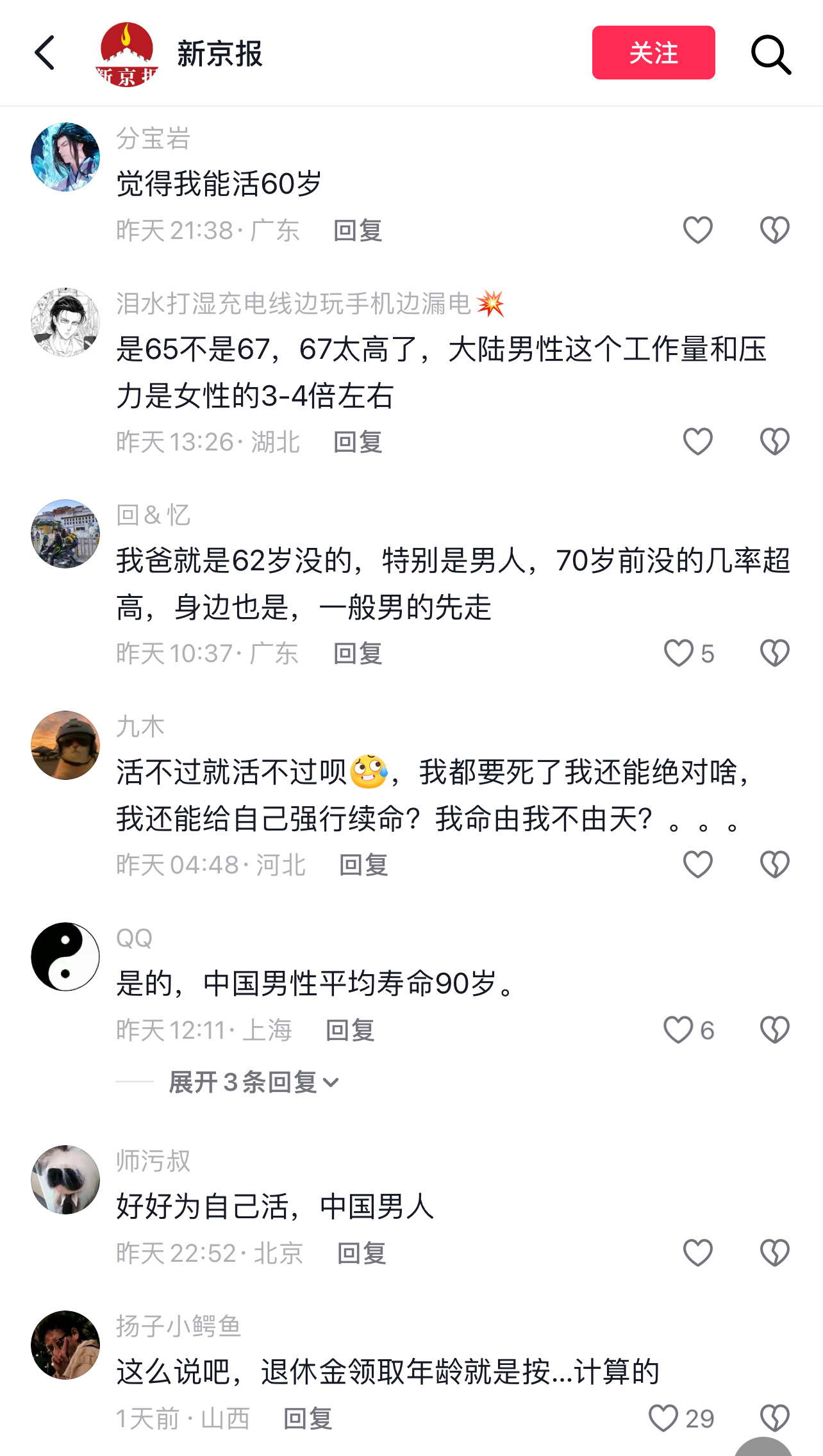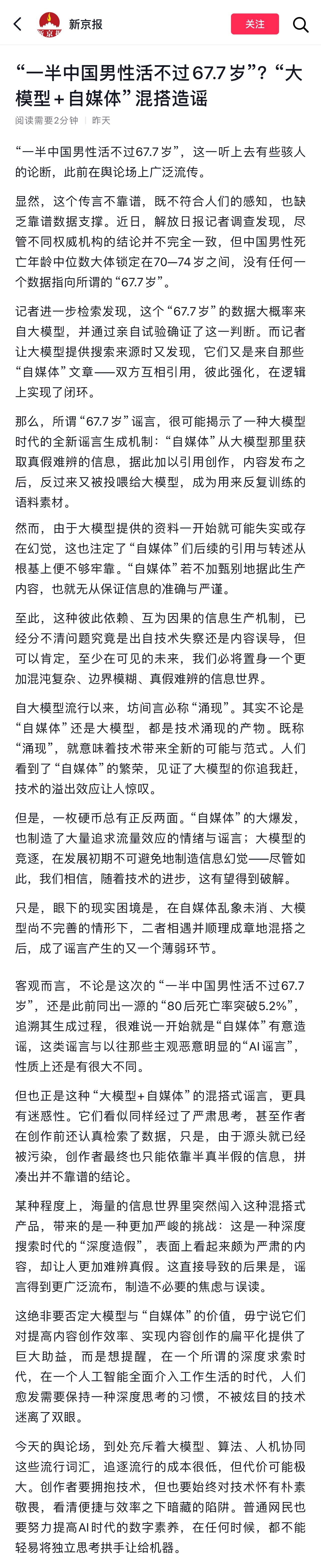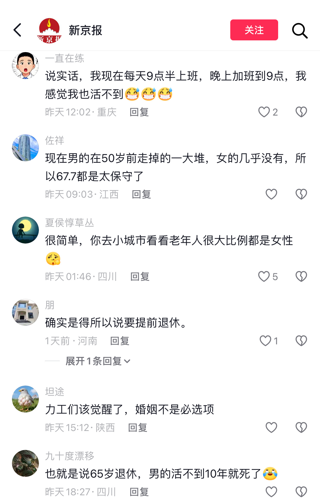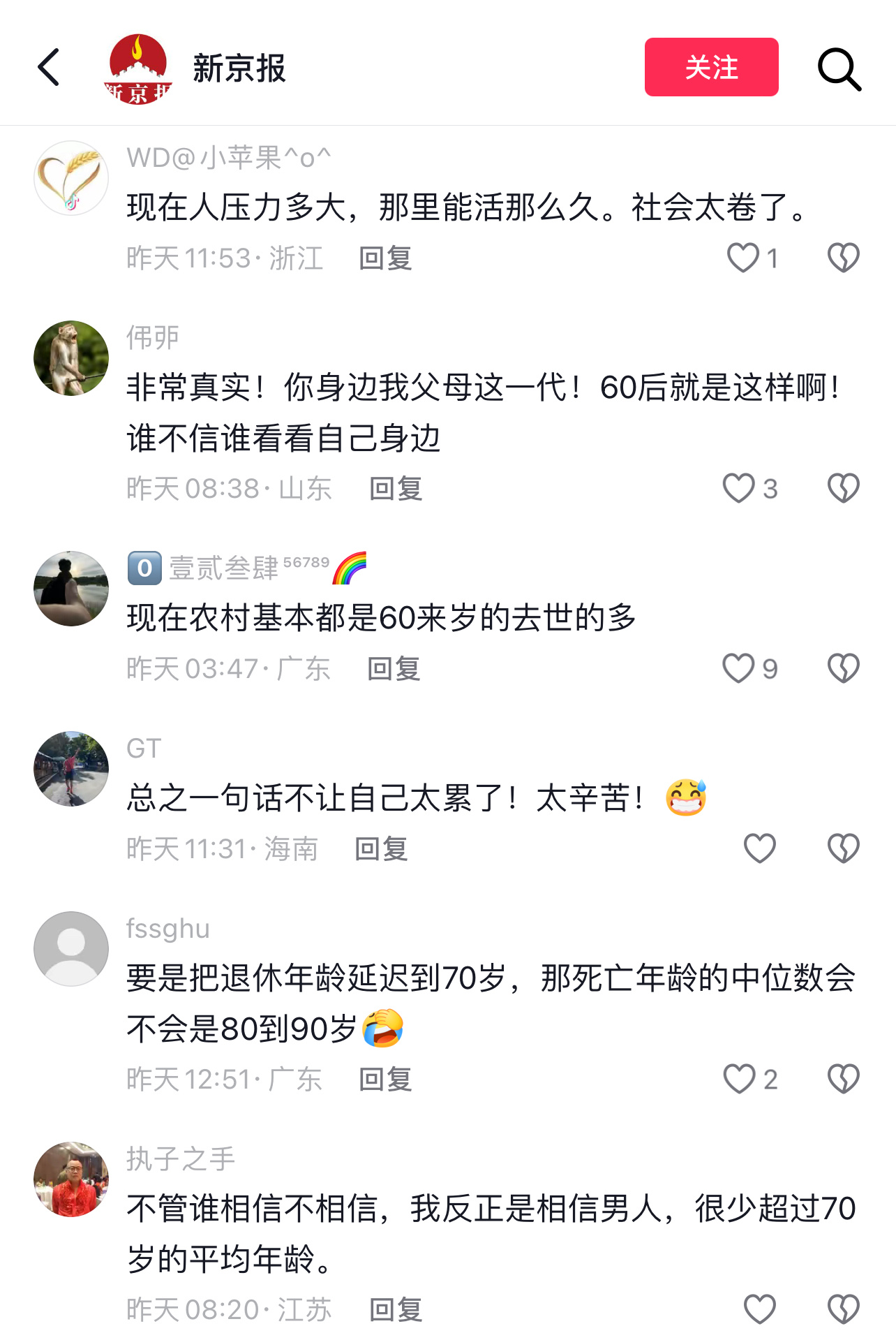 新京报辟谣“一半中国男性活不过67.7岁”不过这条辟谣的评论区……