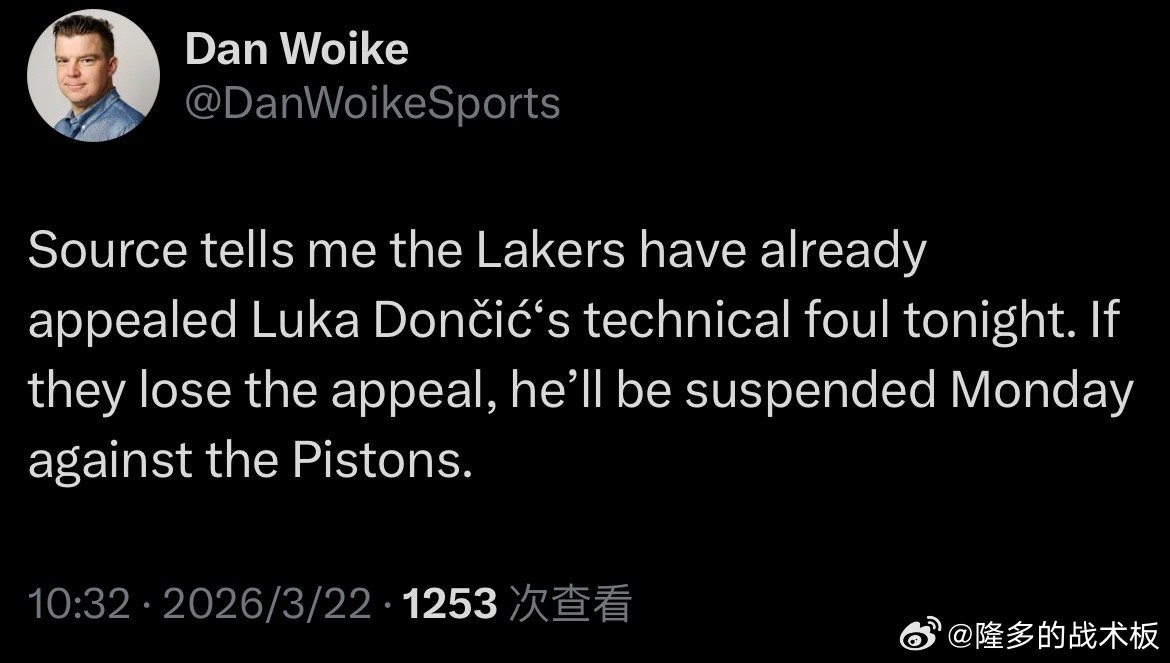 湖人已经正式上诉东契奇的第16次技术犯规。湖人vs魔术