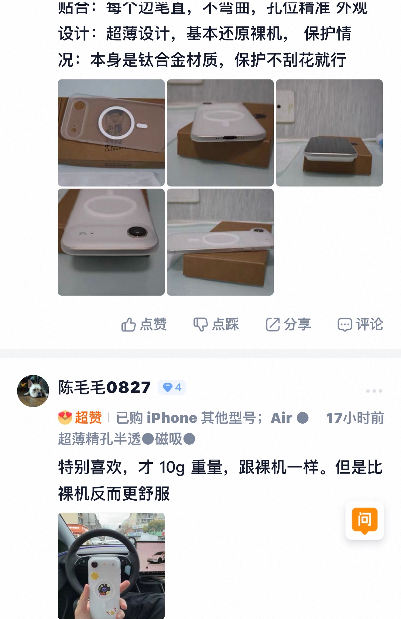 这磁吸壳,也挺 Air轻约11 克,精孔全包,很轻很薄自带磁吸这款也挺受欢迎的
