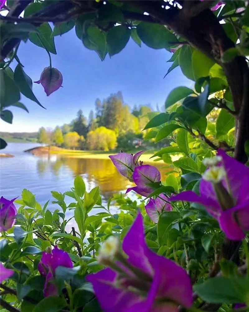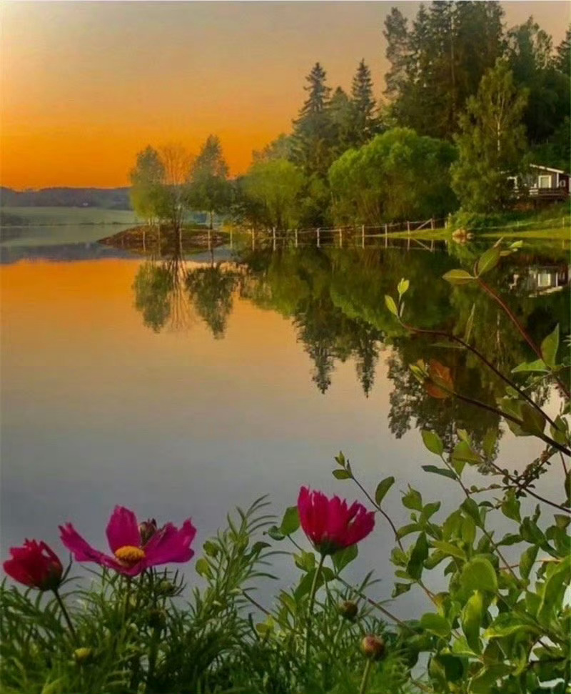 湖畔垂柳拂,花影入梦来。