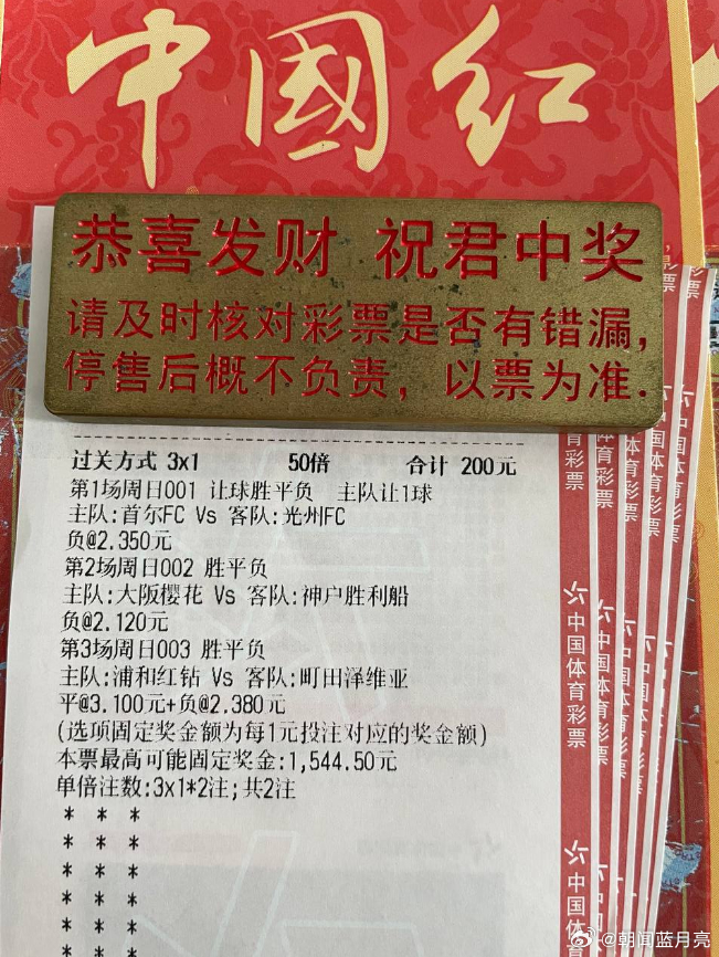联赛:001 韩K联球队:首尔FCvs光州FC方向:让负比分:1-1 1-2 2-2——————————联赛:002 日职联球队:大阪樱花vs神户胜利方向:负比分:0-1 0-1 1-2——————————联赛:003 日职联球队:浦和红钻vs町田泽维亚方向:平+负比分:0-1 1-1 1-2——————————综合来看,首尔FC主场优势、底蕴、战意略占上风,光州FC防守韧性十足、反击犀利,两队实力旗鼓相当。全场比赛节奏偏快、对抗激烈,进球数不会过少,首尔FC小胜或是平局是最有可能的走势,光州FC若能抓住反击机会,也有望客场拿分爆冷。