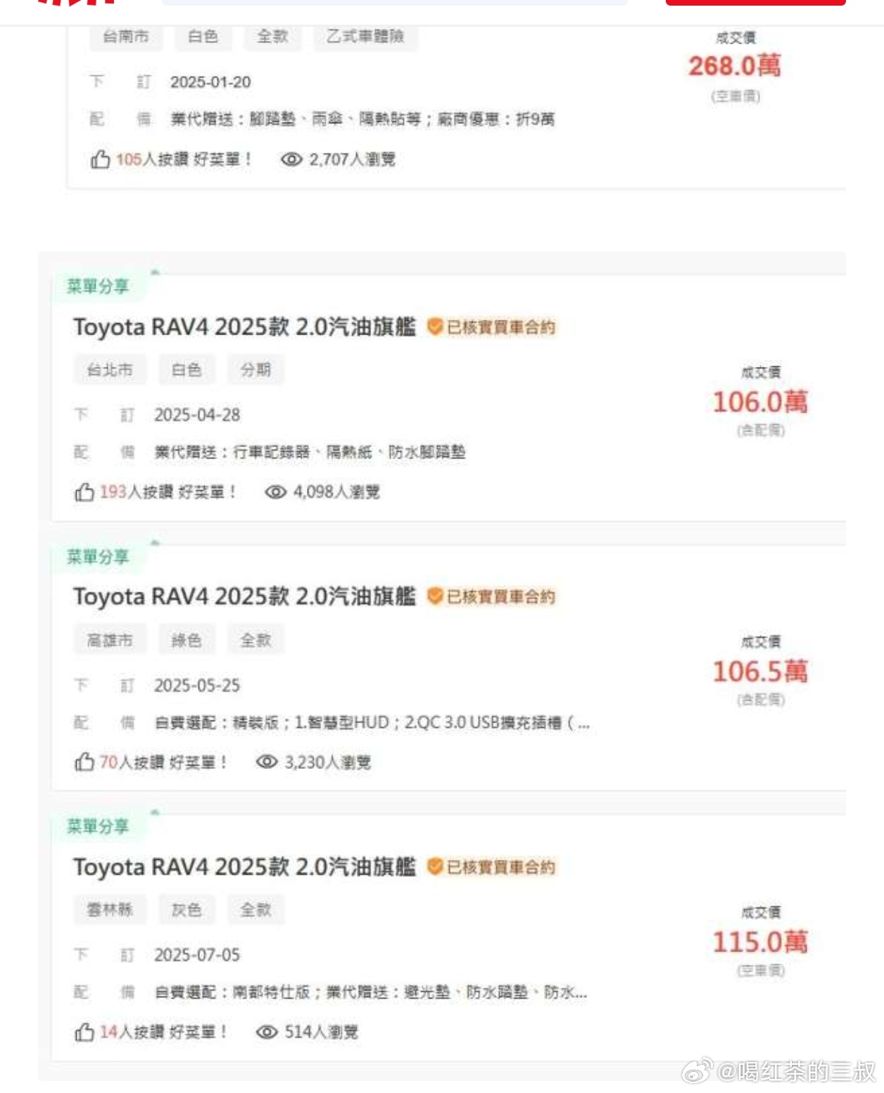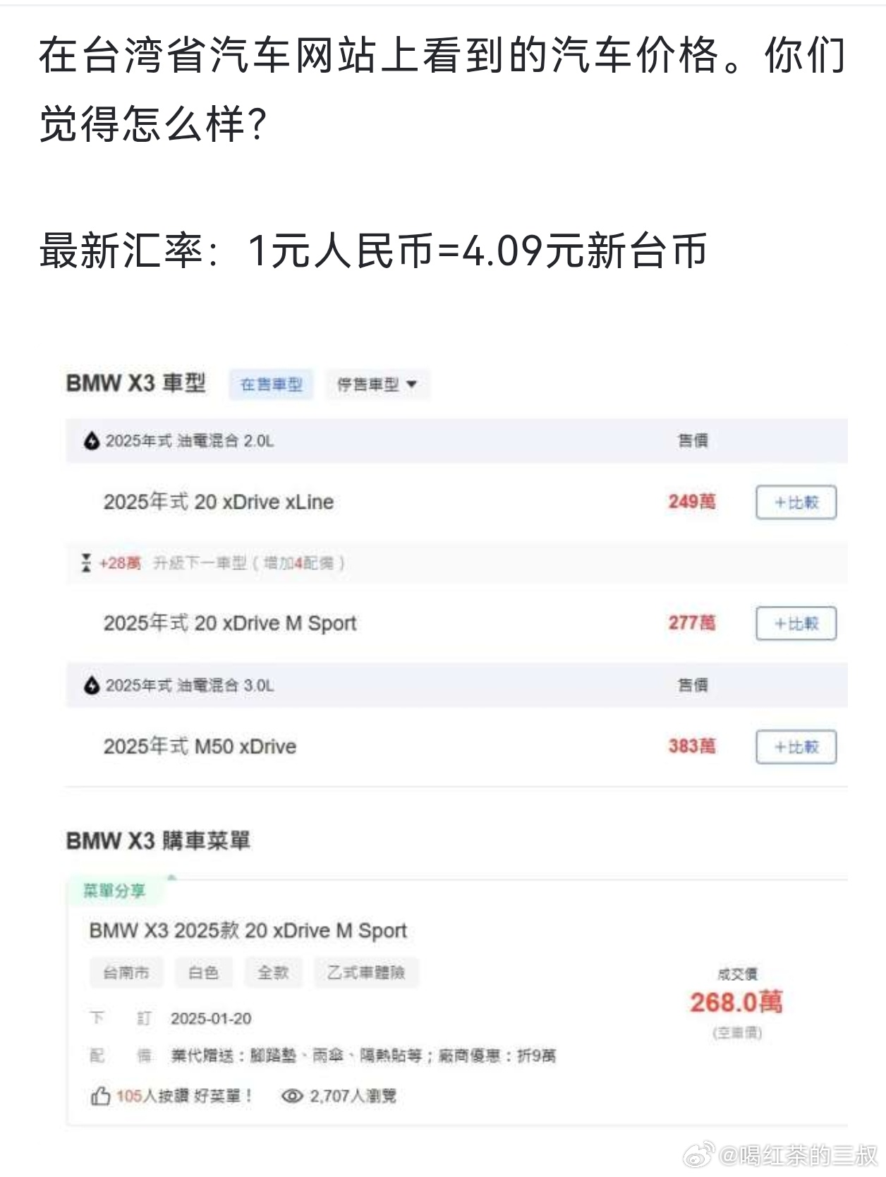看到网上有人说,台湾省油价不贵。不过,台湾省的汽车价格很高。按照下图价格,买车应