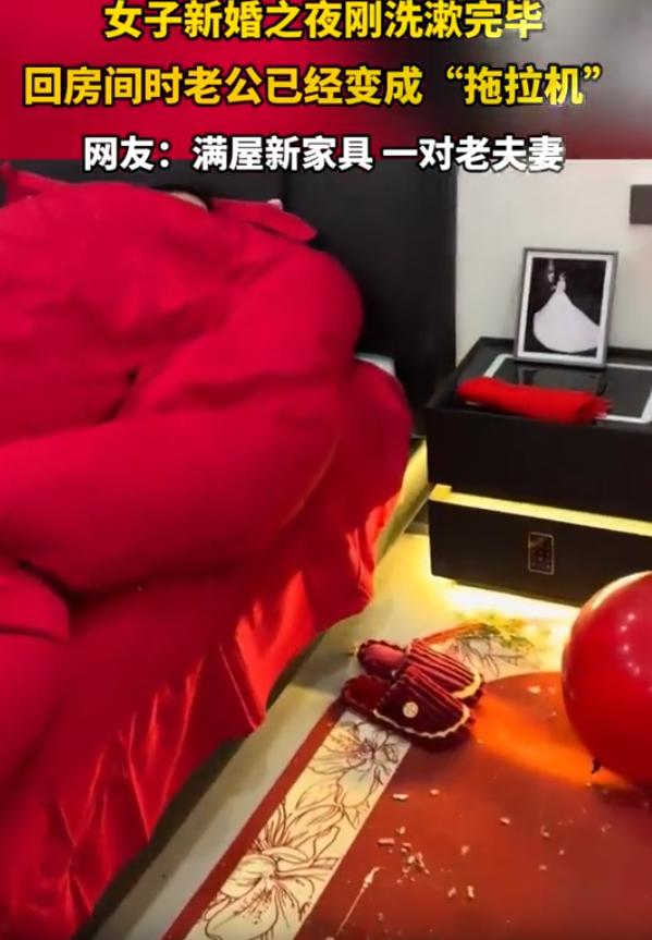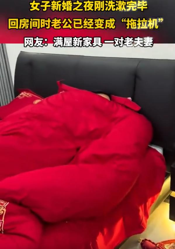 笑不活了!一对新人结婚,洞房花烛夜,新娘回家第一件事就是去洗漱,万万没想到,等她洗漱完毕走出来,丈夫早就躺床睡着了,呼噜声跟拖拉机一样,网友:满屋新家具,一对老夫妻 当天,小两口忙活了一整天,敬酒、敬烟、陪笑脸,从早站到晚,脚底板都麻了。好不容易熬到回新房,新娘第一件事就是钻进卫生间卸妆洗漱,想好好放松一下 没成想,等她收拾完出来一看,丈夫已经倒在床上,蒙着大被睡着了,新娘觉得这个事很好笑,就拍下来发到了网上 对此,网友议论纷纷,有网友说:我跟老婆结婚时,我女儿都两岁了,小警察睡中间,当天又忙又累,啥也没干 还有网友说:这么说吧,两人谈恋爱谈了好多年再结婚入洞房的,就是冷白开水加了个结婚证而已!毫无兴趣可言!激情更没有!如果年龄大点的再结婚更没新鲜感! 仔细想想,确实是这样。很多情侣在一起七八年甚至十几年才结婚,日子早过得跟老夫老妻一样了。那张结婚证领回来,生活不会有任何质的改变。该做饭做饭,该打呼噜打呼噜,第二天醒来,日子照旧 而且从另一个角度看,这种状态未必是坏事 两个人能在一起这么多年还决定结婚,说明已经过了激情期,进入了稳定的阶段。婚礼上那些形式化的东西,对他们来说更像是在完成一个交代给长辈的任务。真正重要的是,婚礼过后,他们还能像往常一样过日子,而不是因为结了婚就突然变得陌生 那些婚礼当天累到倒头就睡的新人,恰恰说明他们之间已经不需要靠形式来证明什么了。能在对方面前毫无顾忌地打呼噜,才是真正放松的状态 归根结底,婚礼只是一天的事,婚姻才是漫长的路。那些满屋子崭新的家具,迟早会留下使用痕迹。而那一对在老家具堆里打呼噜的夫妻,才是真实的生活