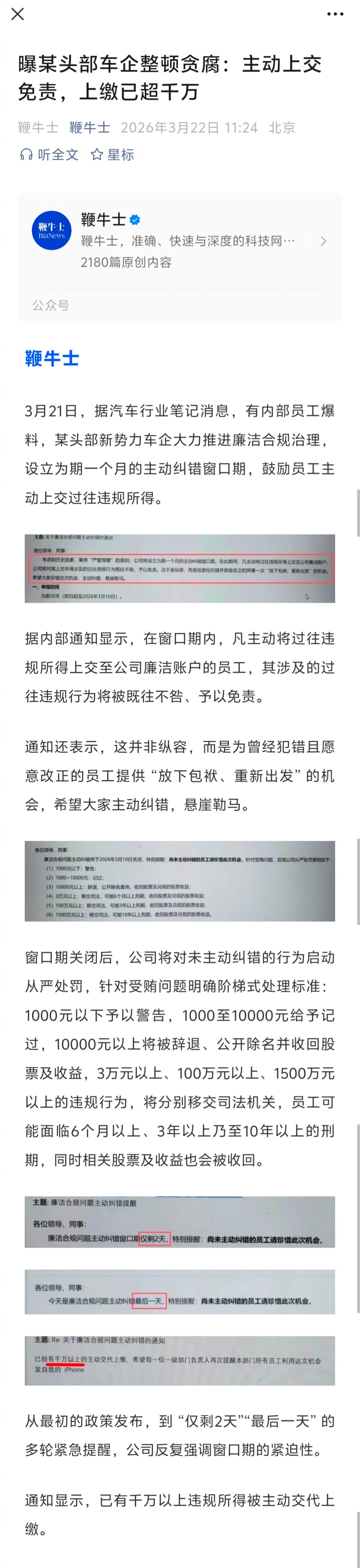 某头部车企整顿贪腐这方法,完全就是一场博弈,不过效果应该很好。