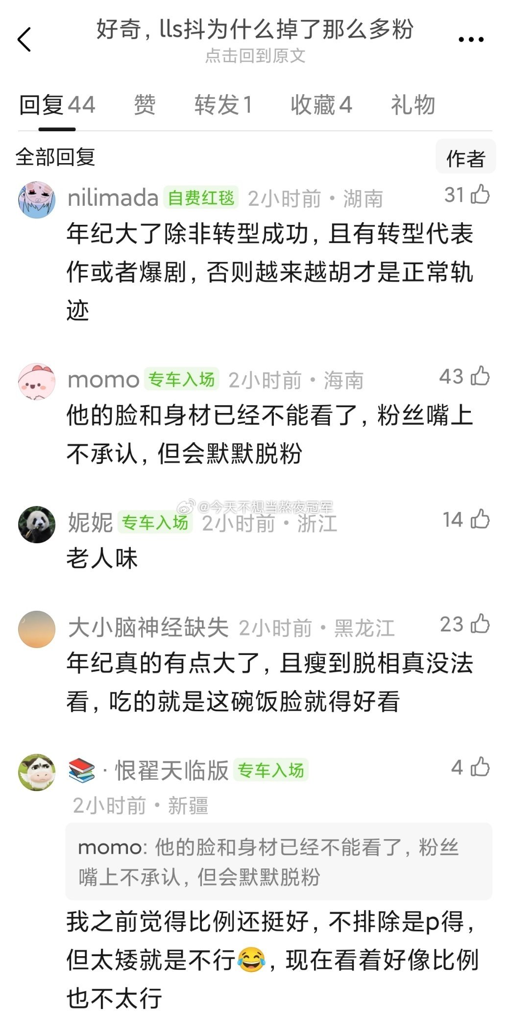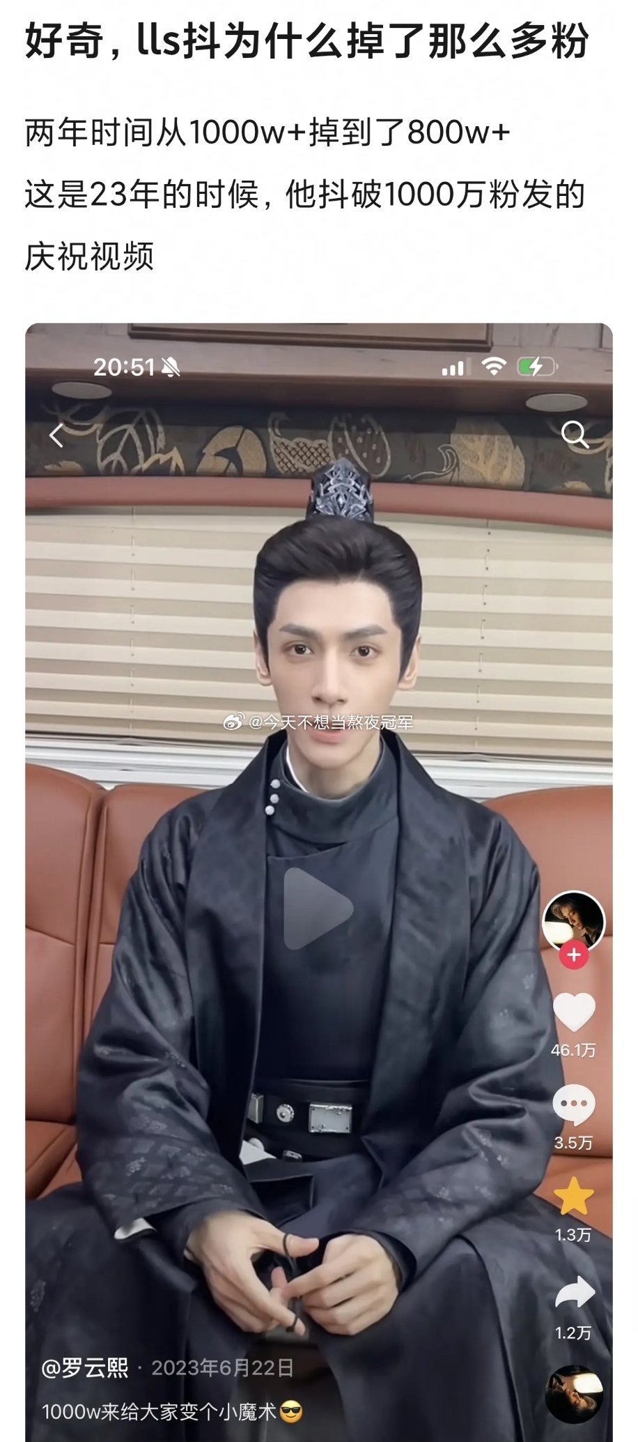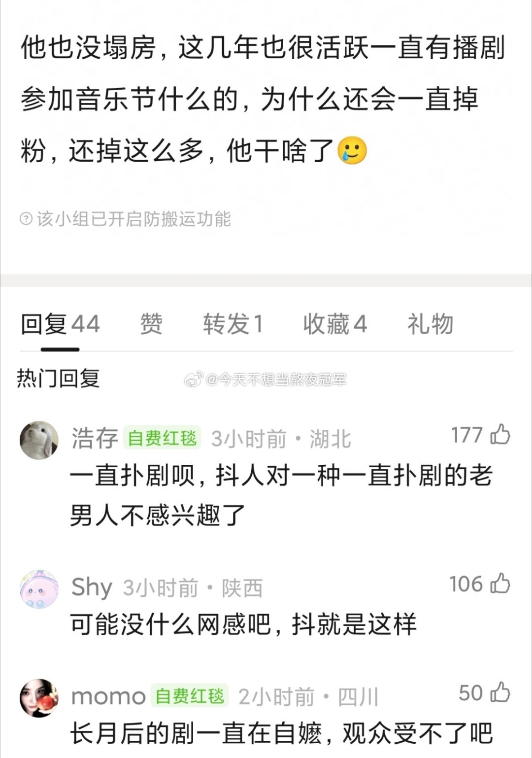 瓣组热议,罗云熙🫘掉粉为什么这么严重?《长月烬明》播完之后破千万粉,lls还专门发视频庆祝,现在两年过去掉了100多万粉。。。按说罗云熙没塌 房,也一直在播剧,还经常有音乐节和舞台,怎么会掉粉这么多?
