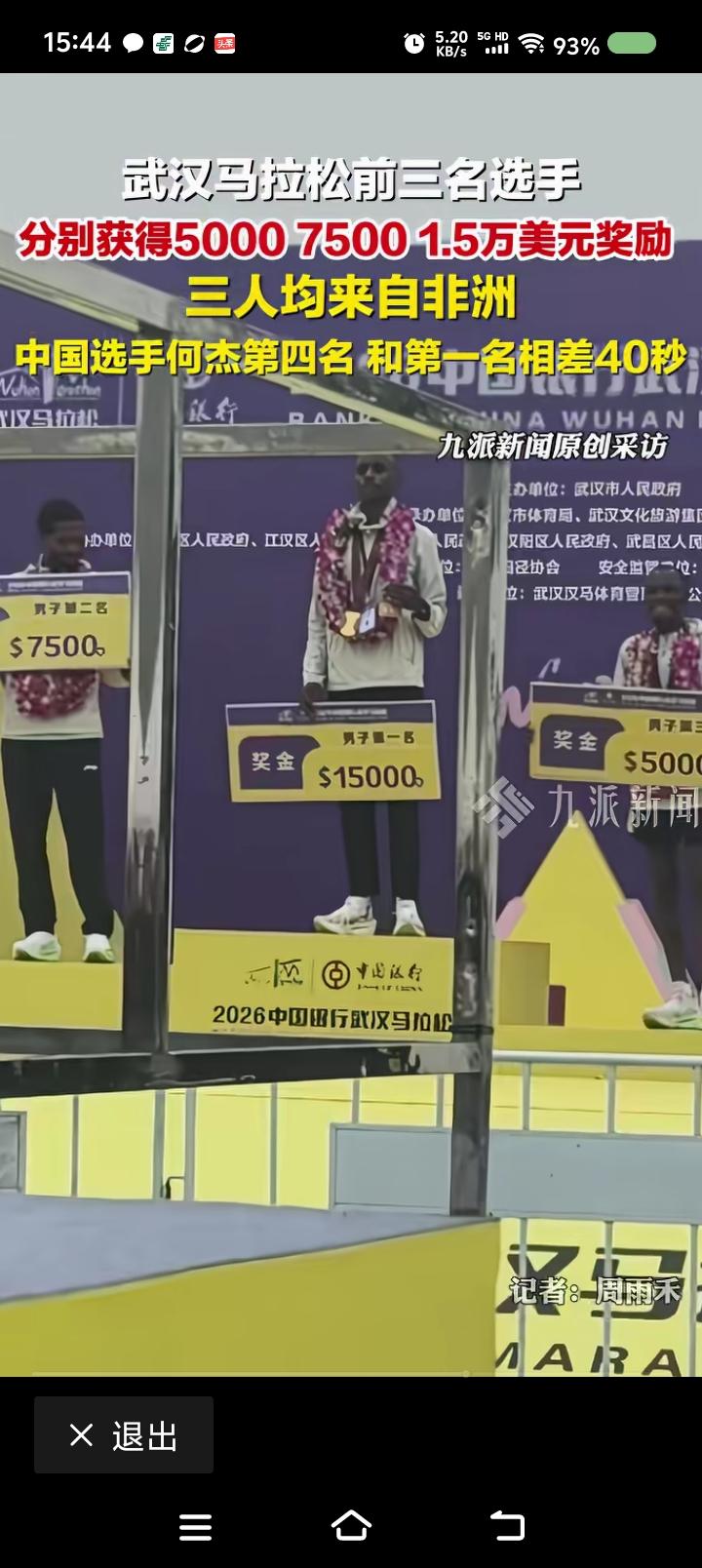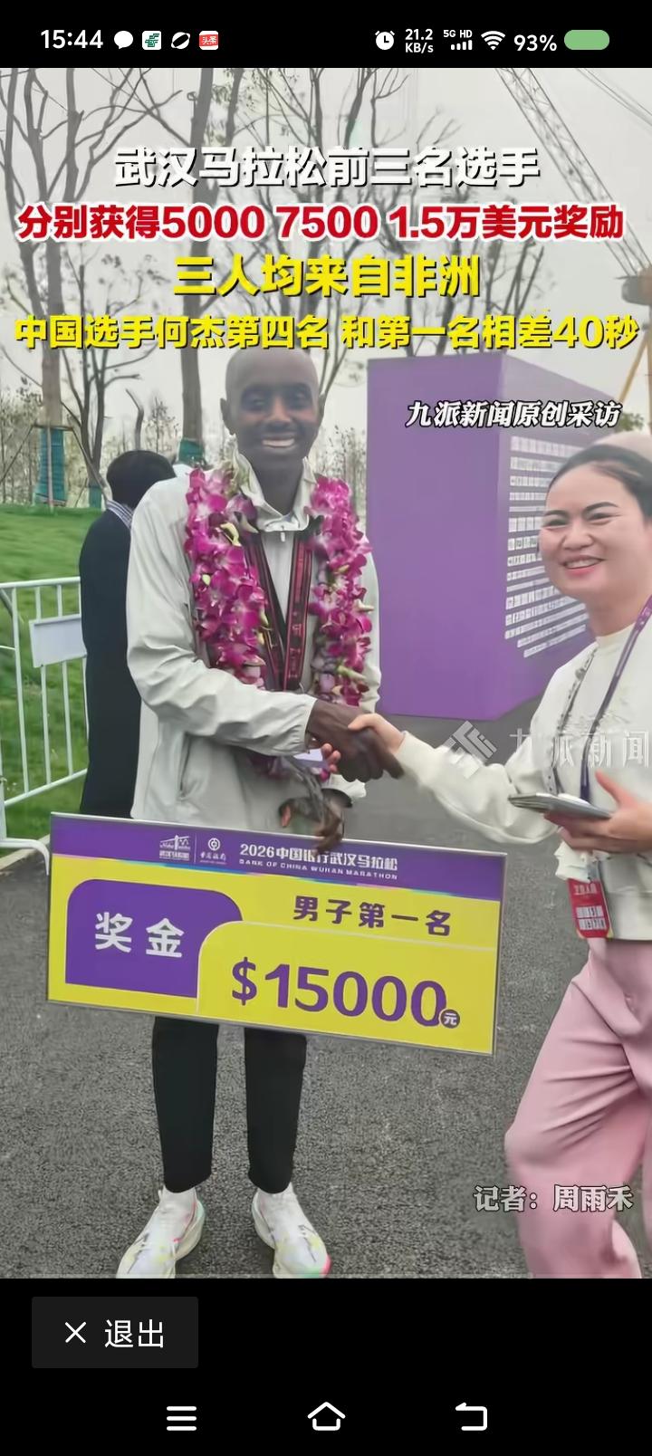 中国这么有钱了?—— 据报道,武汉马拉松赛,前三名均来自非洲,奖金5000、75