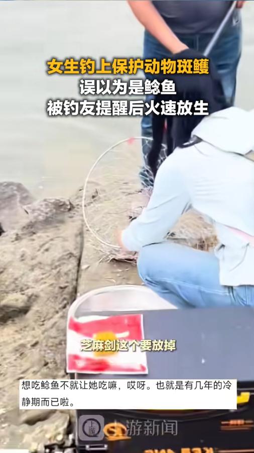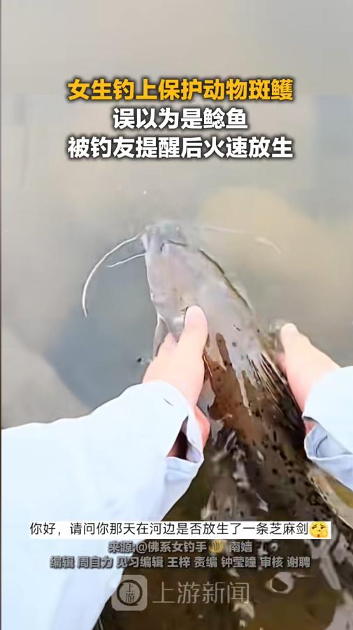 “空欢喜一场!”近日,广东,一女钓手钓上来一条斑鳠,刚开始以为是一条大鲶鱼,在周围人的提醒下,才知道是国家二级保护动物,搞不好是要坐牢的。女子这才惊醒,慢慢给它取下了鱼钩,放生回去。网友:看似你放过了它,实则它放过了你! 钓鱼佬不分男女,闲来无事,很多人都喜欢到水边,钓上一会儿。既能放松心情,说不定还能有些收获,给自己加个餐。不过,一定得学点生物知识,钓到了不认识的鱼,千万得小心处置。万一是个有身份的,麻烦可就大了。 据媒体3月21日报道,当时女子钓上来一条大鱼,让周围人赶紧帮忙拿抄网。旁边的钓友问什么鱼,女子激动的大喊“大鲶鱼、大鲶鱼”。这时候,一个钓友眼尖,认出了这是芝麻剑(斑鳠俗称),对女子说,这个得放掉。 女子不明白,还是说,这是鲶鱼鲶鱼。周围人给她科普,这是二级保护动物,要坐牢的,得放掉。女子这才惊醒,拉抄网的动作都温柔了不少。 在几个人合力下,慢慢把鱼拉了上来,女子轻轻地把鱼钩取了下来,生怕伤着它。这时候,她才看清,虽然和鲶鱼有点像,但是胡子确是白色的。女子不敢大意,慢慢把它放了回去。 网友看后表示,没事儿,也就三五年包吃包住,一看她放的就很不情愿,想吃就吃嘛!当然,这只是网友的玩笑话,可不能当真,在野外钓到东西,首先还是要先确认自己钓的是什么,遇到保护鱼类,一定要及时放生,千万不要有侥幸心理,不然等警察叔叔找上门,可没有后悔的地儿! 信息来源:《3月21日(报道),广东,