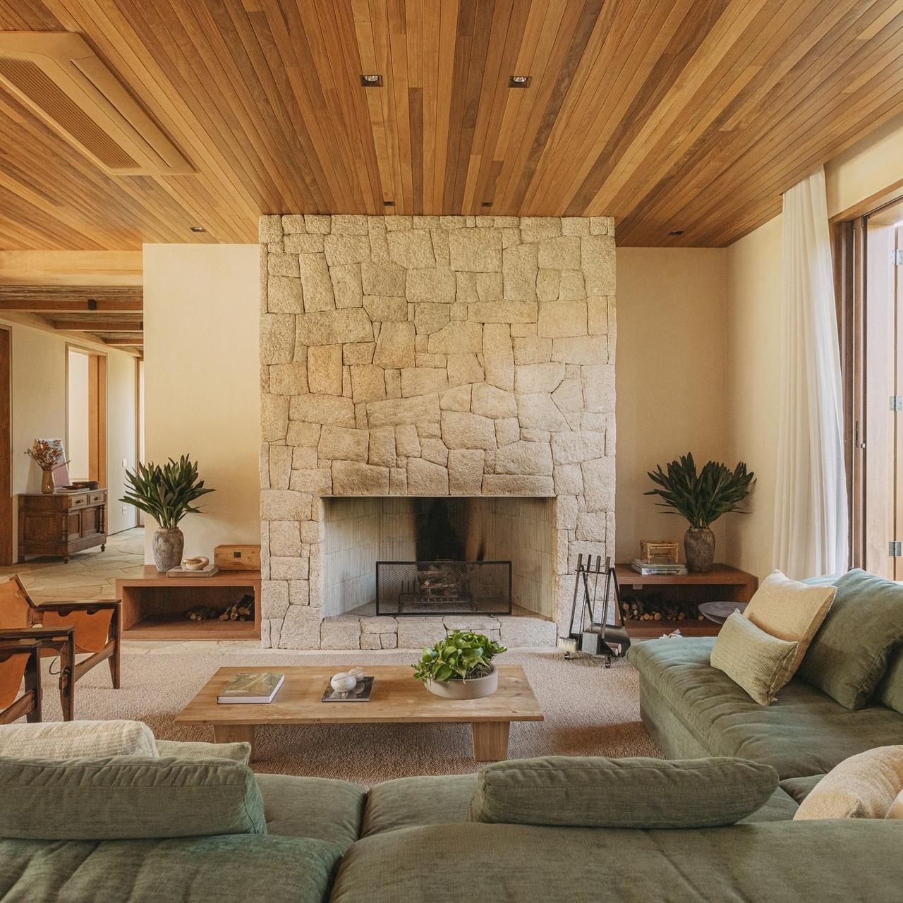 家居设计|美式复古以低饱和暖色调为基底,搭配复古绿、焦糖棕等点缀色,呼应海滨的柔