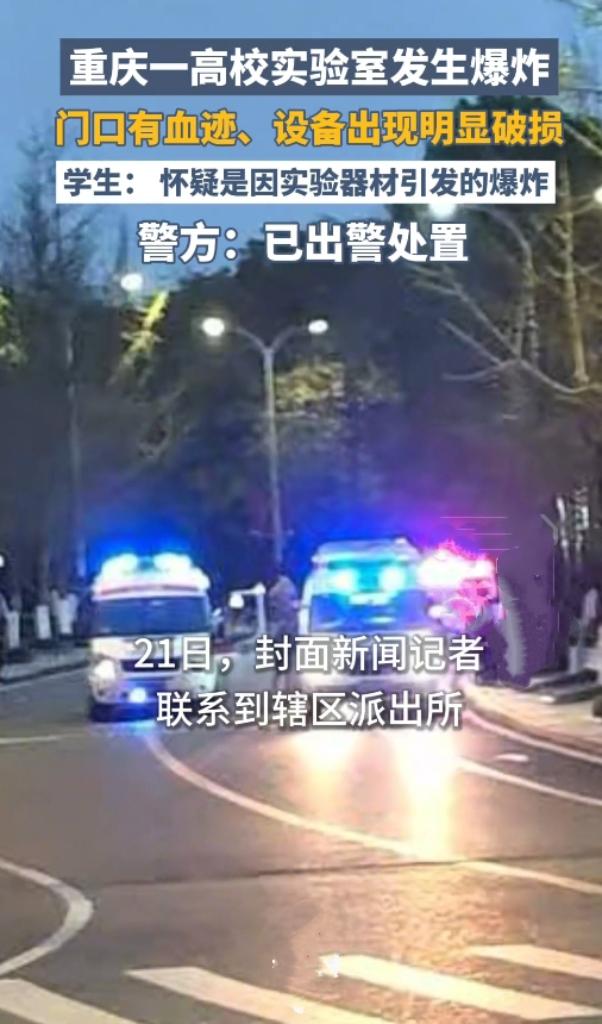 揪心!重庆高校实验室深夜炸响,玻璃碎一地,门口血迹刺眼!这背后的安全漏洞,真该好好查查了! 3月20日晚上8点多,重庆大学城内一所高校的电子信息类实验室突然出事了。“嘭”的一声巨响后,实验室里一片狼藉——设备碎成了块,玻璃渣混着不明液体溅得到处都是,门口还能看到明显的血迹。很快,消防员和救护车呼啸而至,现场拉起了警戒线。 校内学生说,当时里面有同学在做实验,怀疑是实验器材出了问题才引发爆炸。3月21日,封面新闻记者联系辖区派出所,民警只说当晚已经出警处置,具体情况暂时不便透露。可大家心里都在犯嘀咕:好好的实验室,怎么就突然炸了? 其实这不是个例。这几年,高校实验室出事的新闻时有耳闻:有的是化学品混错了比例,有的是老旧设备没及时换,还有的是安全操作流程成了“摆设”。每次出事,大家都心疼受伤的孩子,更想问一句:那些写在墙上的安全规范,到底有没有人真的盯着落实? 实验室是搞研究的地方,不是“埋雷”的地方。学生进实验室前,是不是该把安全出口、灭火器位置刻在脑子里?学校是不是该定期给设备“体检”,别让“过期”的隐患留在身边?咱们普通人也该多念叨念叨:安全这根弦,松一秒都可能出大事。 你觉得实验室安全最该盯紧哪些环节?身边有没有遇到过类似的安全隐患?来评论区聊聊,也别忘了点赞转发,让更多人重视起来——别等出事了才想起“早该注意”! 高校实验室安全不容忽视 信息来源:封面新闻