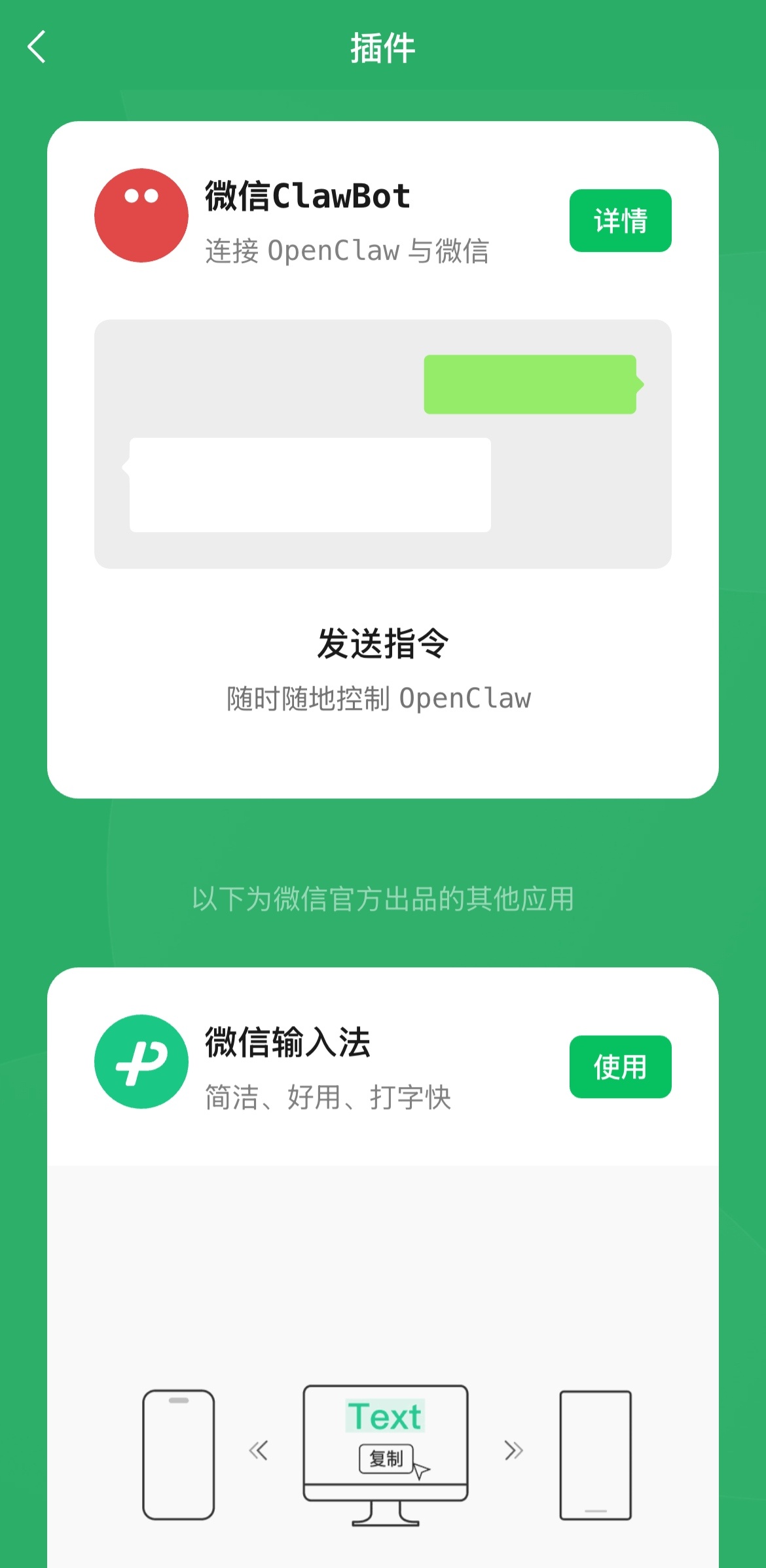 刚发现最新版的微信更新了插件,可以接入小龙虾了,连接后能通过聊天的方式调用自己的