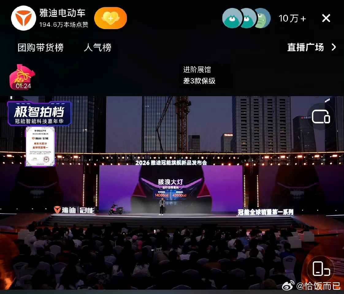 王鹤棣雅迪活动线上和线下人数都爆🔥,三平台直播分流,其中抖音在线人数超10万+