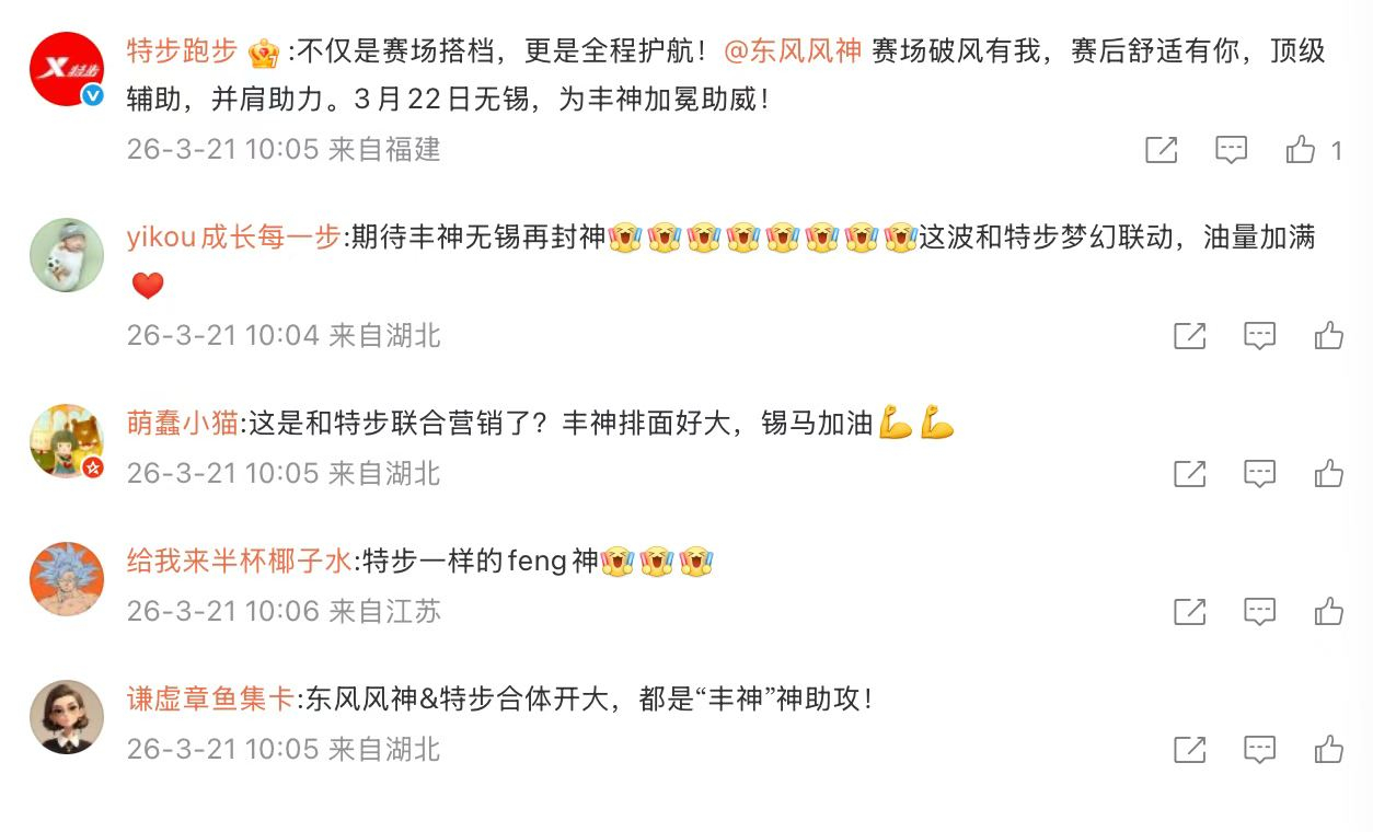 3月22日无锡马拉松,丰配友全程领跑,带领中国马拉松军团集体跑进208,短短一月从东京破全国纪录的 “独行王者”,蜕变为团队领航者,格局拉满,赛后他现场接过东风风神 L8 车钥匙,赛道脚力与汽车马力完成接力,这款15万级混动 SUV,配备马赫电混技术、零压SPA座椅、全景影音系统,成为冠军专属赛后恢复舱。东风风神还与特步跨界联动,“长距离不妥协”,线上话题热度拉满。从马拉松赛道到汽车技术赛道,中国都在领跑,完美上演一波赛场松弛感!丰配友第七次打开210窗口