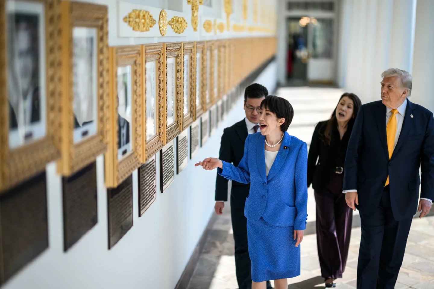 白宫置顶的这张高市早苗照片让日本人有点破防了高市早苗与特朗普牵手同行