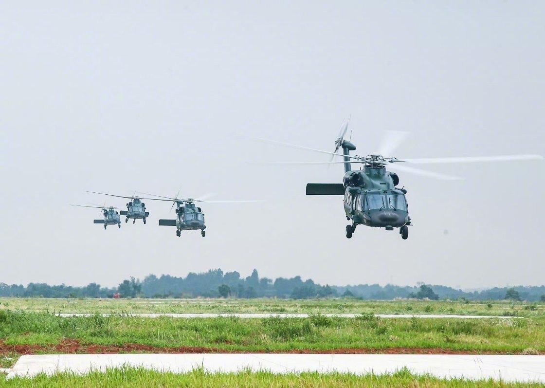 换装直-20的武警部队如虎添翼,编队飞行训练中。