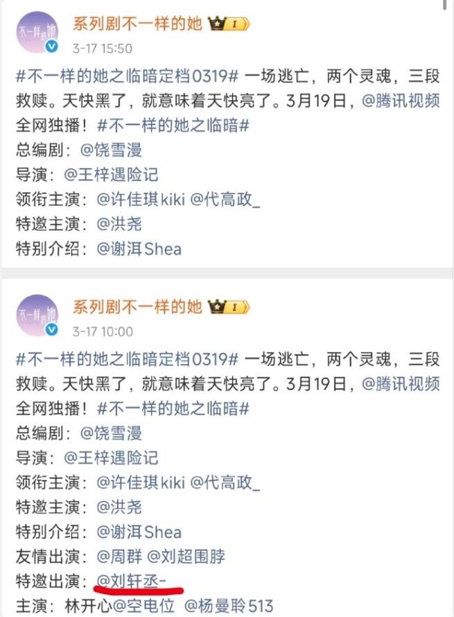 又一环大陆剧演员戏份被删! 饶雪漫短剧《不一样的她之临暗》开播,刘轩丞作为特邀主演在开播前遭片方除名,剧中镜头全部删除,这也是继何昶希之后,一个月内第二次出现环大陆剧演员遭剧方除名,何昶希在《逐玉》中的角色被AI换脸,环大陆剧是耽美题材的网剧,这类剧避开了内娱审核,片方制作后环大陆开播,但是主要观众依旧是大陆群体,没审核就是不合法,所以不听话还跑去拍这个的艺人都会被除名。