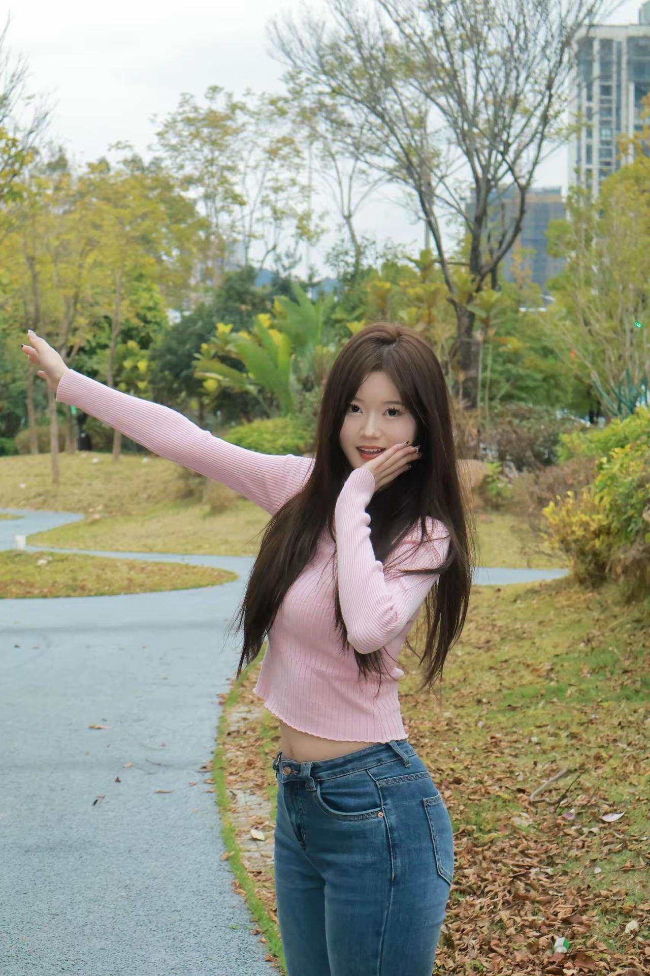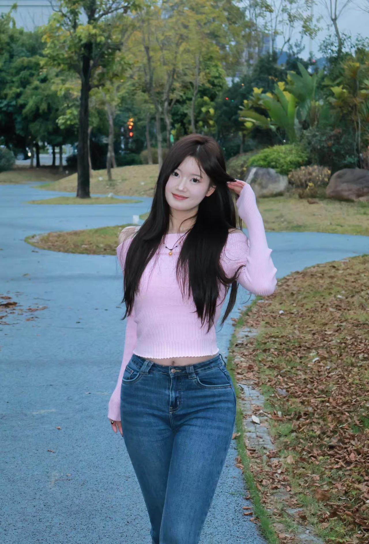 🌿 春日甜酷风休闲穿搭 这套穿搭非常适合春日公园漫步、城市街拍、闺蜜约会等场景,是甜酷又显活力的少女风组合: ✨ 核心单品 • 上衣:粉色坑条短款针织衫 ◦ 坑条面料修身显瘦,粉色温柔显白,自带春日氛围感。 ◦ 露肩/半高领两种设计切换,露肩款增添小性感,半高领款更显温柔,短款下摆拉高腰线,优化身材比例。 • 下装:深蓝色高腰紧身牛仔裤 ◦ 高腰设计收紧腰线,与短款上衣形成“上短下长”的黄金比例,视觉上拉长腿部线条。 ◦ 紧身裤型勾勒臀腿曲线,显瘦又显活力,与粉色上衣形成甜酷撞色,风格更鲜明。 • 配饰: ◦ 细款金色锁骨链:简约小巧,点缀细节,增添精致感,不会过于张扬。 ◦ 同色系发饰/耳饰:呼应上衣粉色,让整体造型更完整。 • 发型:长直发/微卷长发 ◦ 柔顺的长发与甜酷风格适配度极高,风吹过时更显灵动少女感。 🌟 风格亮点 • 甜酷平衡:温柔粉色+酷感牛仔,既保留了春日的甜美气息,又不失利落活力,风格鲜明又不甜腻。 • 显高显瘦:短款针织衫+高腰紧身裤,是打造“九头身”比例的经典公式,轻松穿出大长腿和优越腰臀比。 • 春日氛围感拉满:粉色上衣与春日绿意背景高度融合,拍照出片率极高,是春日穿搭的热门选择。 💡 搭配延伸 • 想更休闲:换一双白色老爹鞋,搭配棒球帽,秒变街头甜酷风。 • 想更温柔:换一双白色玛丽珍鞋,搭配同色系发带,增添少女感。 • 想更保暖:外搭一件白色牛仔外套,应对春日微凉的天气,同时增加层次感。 📸 场景适配 • 春日公园漫步:与绿意盎然的自然环境完美融合,是春日拍照的绝佳选择。 • 城市街拍:甜酷风格与现代建筑背景高度契合,轻松出片。 • 闺蜜约会:温柔又活力的气质,很容易给人留下好印象。 ootd 牛仔裤 轻熟