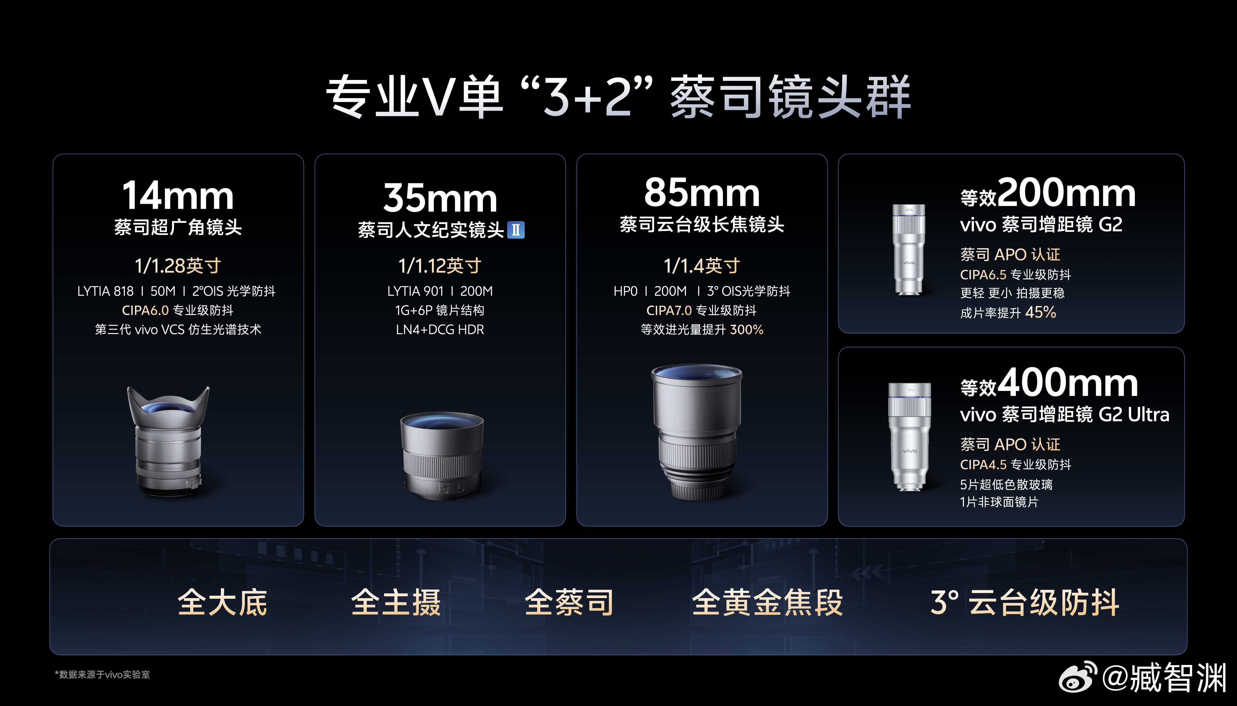 这代vivo X300 Ultra有点意思啊,14/35/85mm;连增距镜都有两个,200、400。视频也发力了。刚刚已经拿到手机了等我试试vivo X300 Ultra专业V单