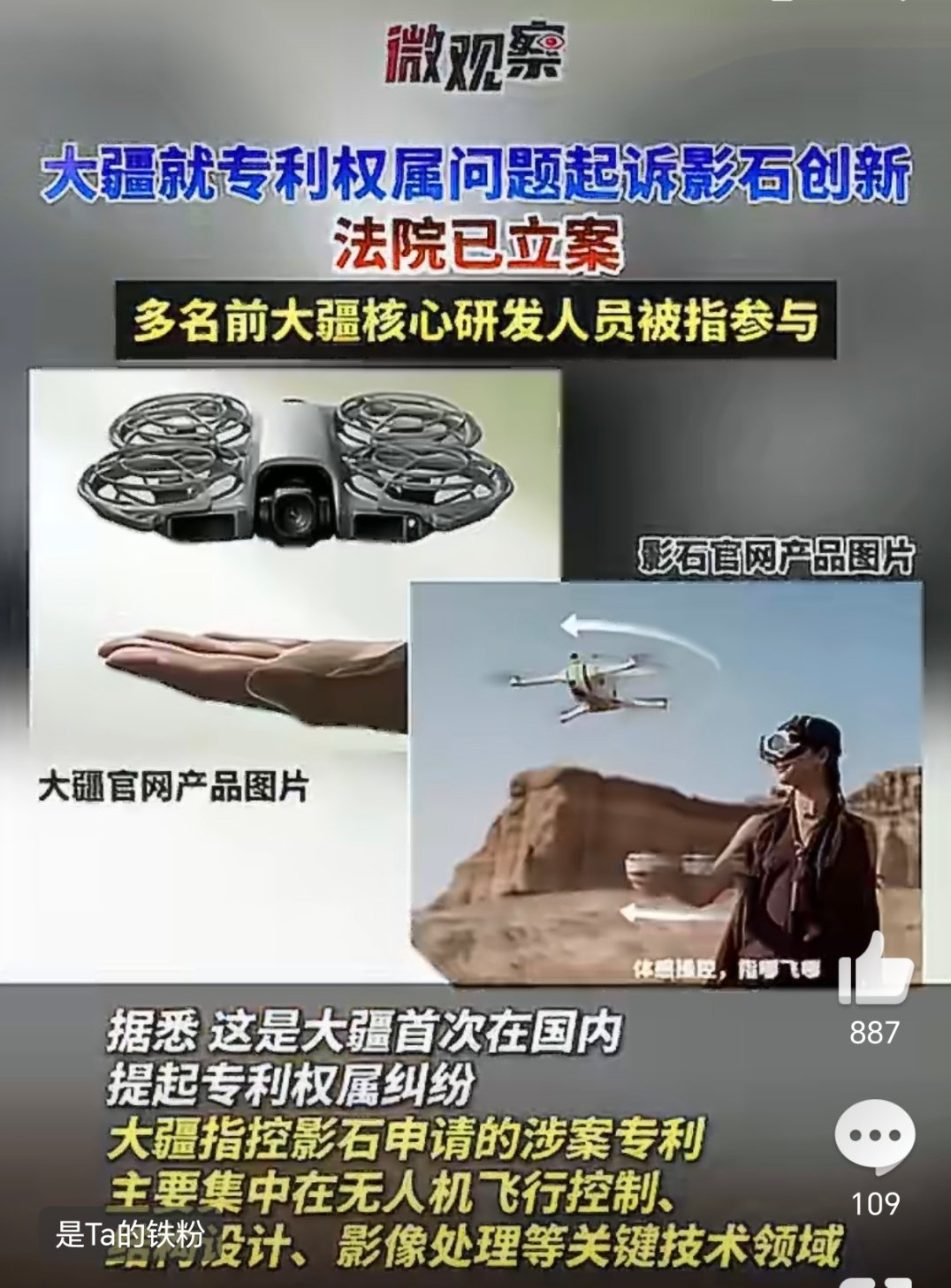 好家伙,大疆曾经的核心研发跑到影石去了,然后还弄了一堆老东家的专利技术???