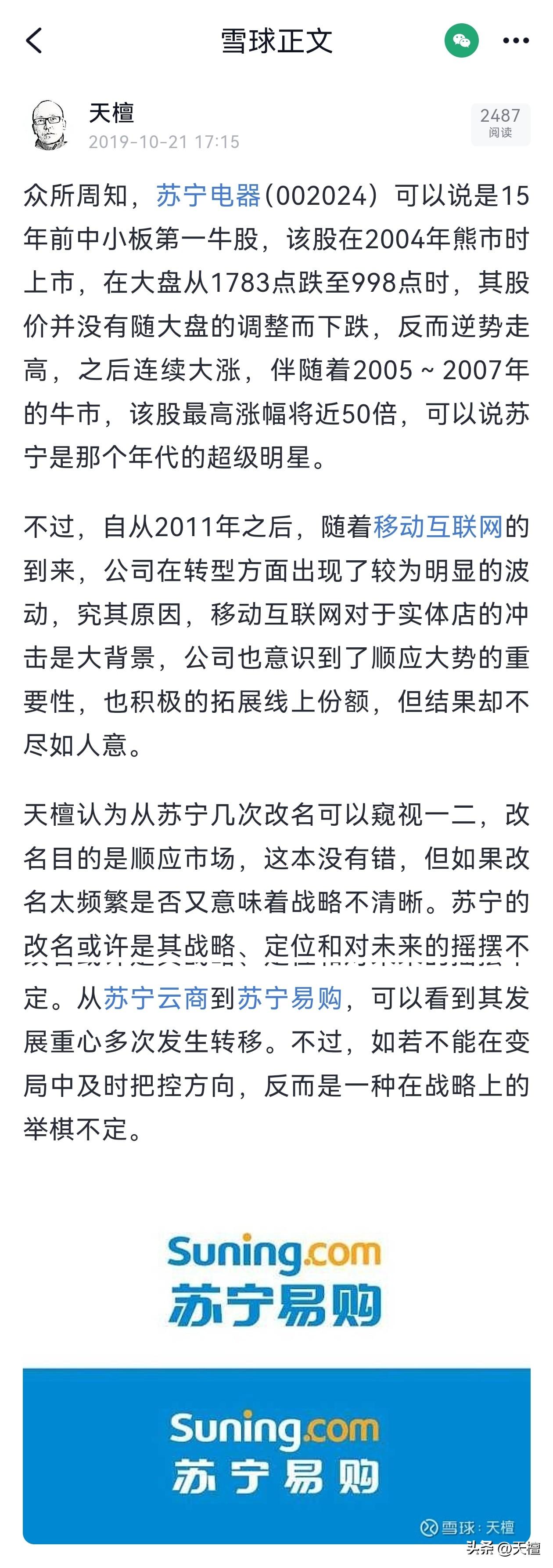 7年前的2019年,我两次对苏宁这个企业表达了从我的角度看到的问题!