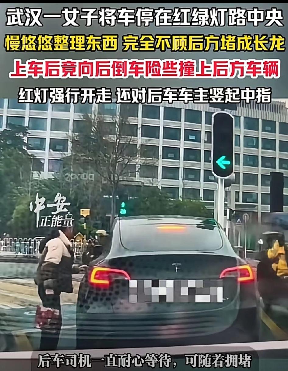 “这种人必须得治!”湖北武汉,某红绿灯路口处,一司机完全无视后面排着长龙的车辆,竟将其驾驶的特斯拉停在了路中间,车上女乘客迈着四方步下了车,接着,悠哉悠哉的整理后备箱的东西,又在众目睽睽之下,不紧不慢的上了车。更奇葩的是,她上车后,司机出乎意料的做出倒车动作,差点没撞翻后方车辆,后方车主吓得瞬间一颗心提到嗓子眼。让后方车辆崩溃的是,司机闯红灯离开不说,极其嚣张把手伸到车窗外,竖起中指,挑衅味十足,接着扬长而去。后方车主气炸了,回到家后,将行车记录仪里记录下来的这一幕,发布到了网上。 2026年3月20日清晨8时左右,武汉光谷核心商圈早高峰时段,左转车道车流密集,车辆里载着赶时间的上班族与送学家长,车轮行驶的声响与街边早点摊的吆喝声交织,构成了城市清晨忙碌的日常。 路口左转信号灯变为绿色后,排队车辆本应依次通行,一辆特斯拉却反常停在左转车道中央,车身卡在车道标线内,车轮未越过停止线,绿灯亮起后依旧没有移动。 后方车辆短暂停顿后,紧随其后的黑色SUV司机王先生轻按喇叭试探,他握紧方向盘,心里猜测车主可能是临时找东西或走错路线,打算再稍作等待。副驾驶的妻子看着上班打卡时间,忍不住嘀咕绿灯已亮,车辆迟迟不动容易耽误迟到。 随着时间推移,左转车道积压的车辆越来越多,鸣笛声从零星试探变得愈发密集,满是出行人的焦躁。 停在车道中央的特斯拉上,一名身着米色风衣的女乘客并未在意身后拥堵,推开车门下车整理好被风吹乱的头发后,径直走到后备箱翻找物品,全程没有回头查看车流,也没有理会鸣笛声,举止从容得仿佛身处安静的停车场,而非拥堵的早高峰路口。 王先生看着时间愈发焦急,打卡仅剩十分钟,继续等待必然迟到,他朝着前车呼喊提醒,可声音被车窗阻隔,无法传递到前车。 绿灯亮起近一分钟后,女乘客整理完物品关好后备箱,慢悠悠坐回副驾驶。此时左转绿灯时长即将耗尽,驾驶员陈某这才启动车辆准备通行。 陈某看着后视镜里排起长队的车流,听着持续的鸣笛声心生烦躁,在绿灯即将结束时猛地挂入倒挡快速倒车,后车王先生紧急避让,并未发生碰撞。王先生被这一举动惊出冷汗,大声提醒对方注意行车安全,陈某却并未理会。 完成倒车后,路口信号灯转为红灯,被情绪裹挟的陈某无视红灯信号,踩下油门驾车闯红灯驶离路口,行驶途中还向后方的王先生做出挑衅手势,王先生目睹全程十分气愤,只能看着车辆驶离。 王先生平复情绪后,将行车记录仪拍摄的完整视频发布至网络,视频很快引发公众关注,网友们纷纷对陈某违反交规、危险驾驶的行为提出批评。 交警部门接到相关线索后,结合视频与路面监控展开调查,连夜锁定涉事驾驶员陈某的身份与住址,次日将其找到。面对调查,陈某起初试图辩解,在完整的行车记录仪证据面前,最终承认了自身的违法行为。 依据《中华人民共和国道路交通安全法》相关规定,交警对陈某闯红灯的违法行为依法处以罚款200元、驾驶证记6分的处罚。陈某此前驾驶证已记9分,本次记分后累计记分超12分,需重新参加科目一考试。 针对其路口恶意倒车、挑衅他人的不文明驾驶行为,交警对其进行严肃批评教育,讲明该行为对公共交通秩序和他人出行安全造成的不良影响。 面对处罚结果,陈某认识到自身错误,当场认错致歉。这场早高峰引发的交通闹剧,最终以涉事驾驶员承担相应违法代价收尾。 早高峰的路口,每一辆车都承载着普通人的出行需求,遵守交通规则是出行底线,肆意扰乱公共秩序、漠视他人安全的行为,不仅会触犯法律受到惩处,也会受到公众的道德谴责 消息来源:网络公开内容,本文配图/视频素材来自网络,仅用于纪实分享与社会观察,如有侵权请联系删除,谢谢!