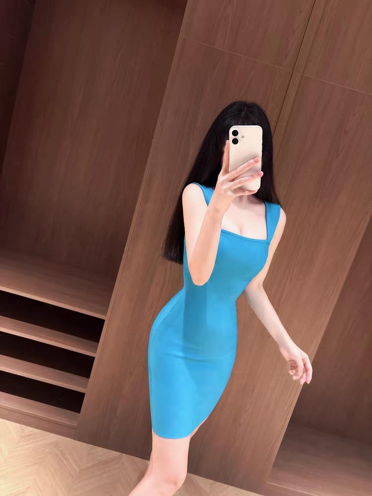 简约高级曲线修身气质背心连衣裙!