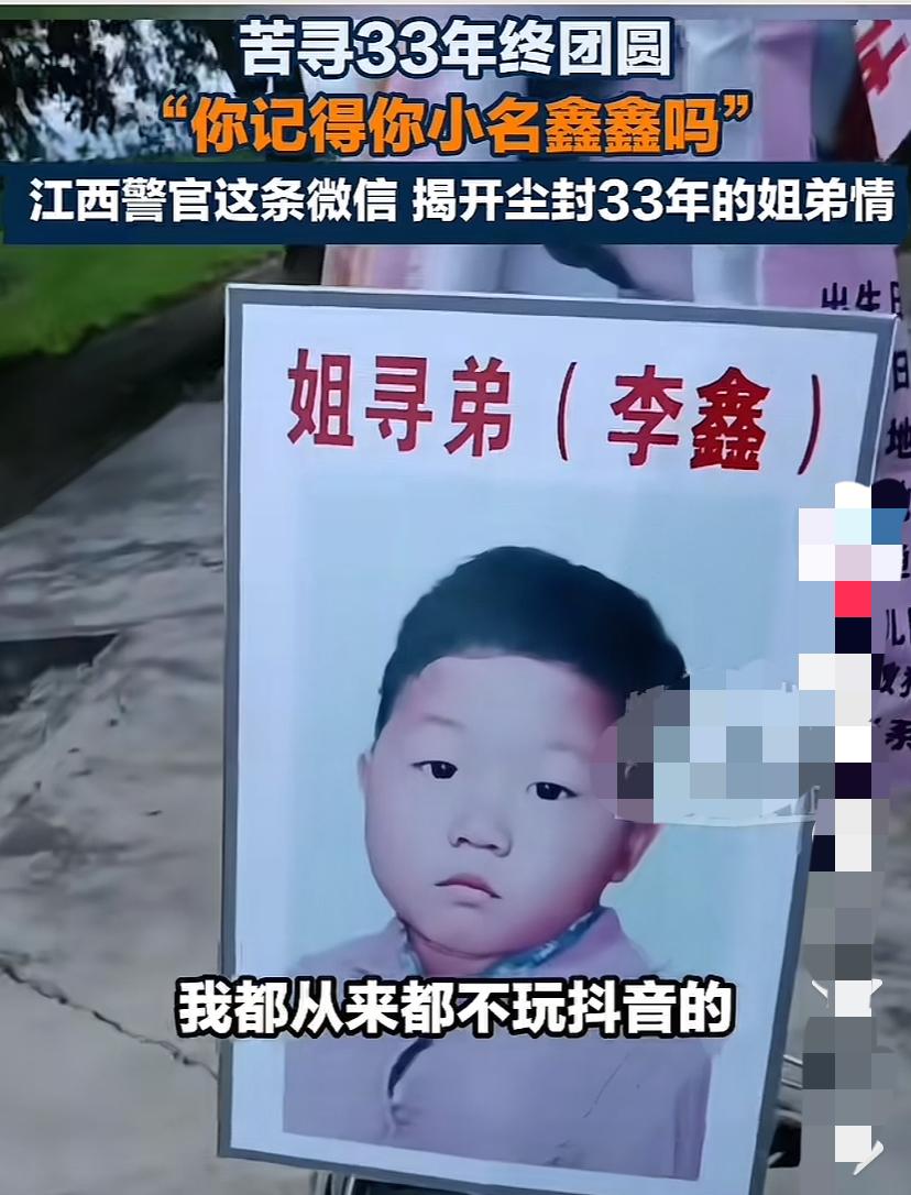 湖北仙桃的李林,抱着一张泛黄的老照片找了弟弟33年,从十几岁的少女熬到中年,跑遍了大江南北,也在社交平台发了无数条寻亲视频,盼着能刷到弟弟的身影,可日复一日的等待,始终没有回音。 很多人都纳闷,如今网络这么发达,寻人视频铺天盖地,怎么就偏偏碰不上,直到弟弟的近况被揭开,大家才恍然大悟,这场跨越33年的错过,藏着最让人唏嘘的现实原因。 弟弟当年被拐后,辗转多地被好心人收养,早已改名为韩伟文,在广东汕头扎根生活,结婚生子、扛起家庭重担,日子过得平淡又踏实。 他和大多数忙于生计的普通人一样,心思全放在养家糊口、照顾老人孩子上,压根没精力接触短视频平台,抖音这类社交软件更是从未下载过,平日里连刷视频的习惯都没有。 这也就意味着,姐姐李林熬夜剪辑、一遍遍发布的寻亲视频,那些饱含思念的呼唤,根本没能传到弟弟的耳朵里,两人就像处在两个平行的信息世界,明明都在惦记着彼此,却始终没有交汇的契机。 对于自己的身世,韩伟文心里一直藏着模糊的记忆,他记不清完整的家乡地址,也说不上家人的全名,唯独刻在骨子里的,是自己的小名叫鑫鑫,这个小名伴随了他几十年,成了他和原生家庭唯一的牵绊。 成年之后,他不是没有动过寻亲的念头,只是手头的线索少得可怜,没有具体的地名、没有清晰的容貌记忆,想找亲人无异于大海捞针,只能把这份念想压在心底,默默等着可能出现的转机。 转机来得猝不及防,是警方的一通电话,打破了他平静的生活。负责寻亲的民警辗转锁定他的身份后,拨通了他的号码,开口第一句就问他知不知道有个姐姐找了他33年。 没有丝毫犹豫,韩伟文立刻给出了肯定的答复,这句“我知道”,没有多余的修饰,却藏着几十年的心事。他从未怀疑过姐姐的存在,也坚信姐姐不会放弃自己,这份笃定,源于小时候姐弟相依为命的时光,哪怕分离了大半辈子,血脉里的牵挂从来没有断过。 姐姐李林的寻亲路,满是心酸与执着。弟弟走失那年,她才十几岁,本该是被呵护的年纪,却扛起了寻弟的重担,家里的变故让她早早懂事,弟弟是她心里最放不下的人。 这些年,她不管走到哪里,都带着弟弟小时候的照片,逢人就打听,哪怕被人质疑、被人误解,也从来没有停下脚步。 后来短视频兴起,她像是抓住了救命稻草,学着拍视频、发作品,把弟弟的信息、自己的思念全都揉进视频里,盼着网络能帮她找到亲人,可她怎么也想不到,弟弟压根不刷这些平台,所有的深情呼唤,都没能抵达目的地。 直到警方通过人脸识别、DNA比对等技术手段,一步步核实了韩伟文的身份,这场跨越33年的分离才终于迎来句号。 接到民警电话时,韩伟文的内心满是震撼,他赶紧下载了抖音,把姐姐发布的所有寻亲视频从头到尾看了一遍,看着姐姐憔悴的面容、哽咽的话语,才知道姐姐这33年承受了多少煎熬,愧疚与思念瞬间涌上心头,他才明白,原来姐姐的寻找从未停止,只是他们之间差了一层看不见的信息壁垒。 认亲现场,姐弟俩相拥而泣,33年的思念在那一刻爆发,没有华丽的辞藻,只有止不住的泪水和反复的呢喃。 那些年的错过,不是因为遗忘,也不是因为冷漠,只是因为生活轨迹的偏差、信息渠道的隔绝,让两个满心牵挂的人,错过了一次又一次。姐姐的执着没有白费,弟弟的坚守也有了归宿,这场迟来的团圆,治愈了两个人半辈子的遗憾。 其实在很多寻亲故事里,这样的信息差并不少见,有人忙于生计无暇关注网络,有人身处偏远地带接触不到主流平台,让本该早点团聚的亲人,多等了一年又一年。 看着这对姐弟终于团圆,既让人觉得暖心,又忍不住感慨缘分的奇妙。你身边有没有类似的寻亲故事?或是对这场跨越33年的团圆有什么感触,不妨说说自己的看法。