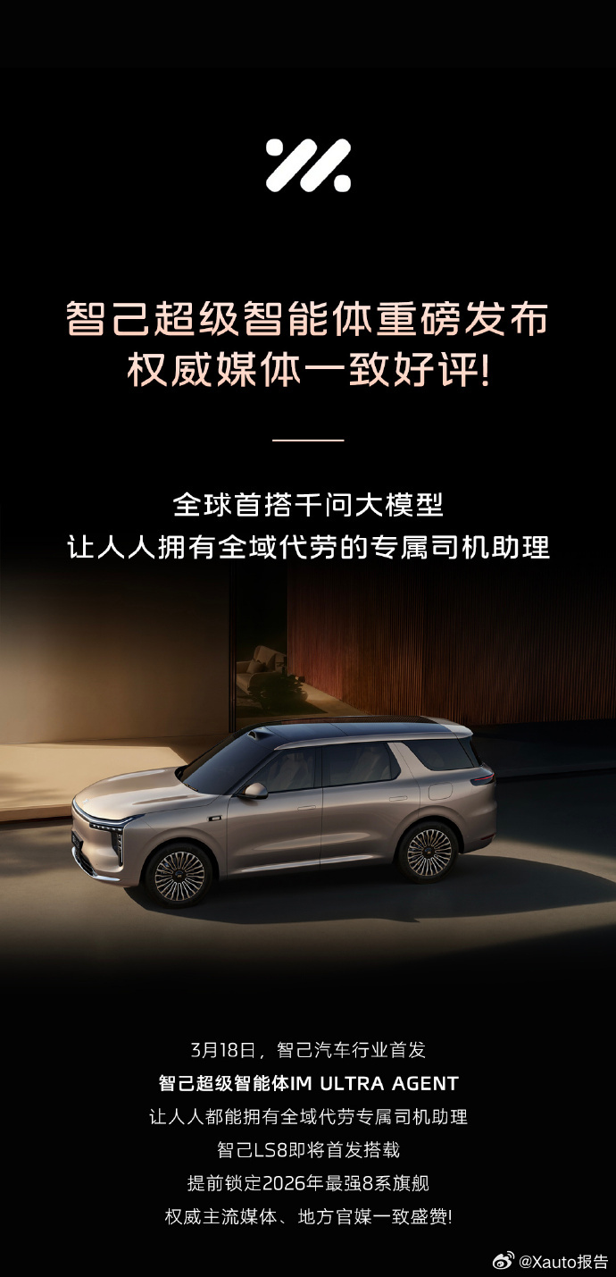 智己LS8定档3月26日预售智己LS8将于3月26日震撼预售,定位30万内旗舰SUV,将首发搭载千问大模型,助力产业实现代际跨越,备受期待。智己LS8智己LS8预售发布定档3月26日千问大模型首发搭载智己ls8
