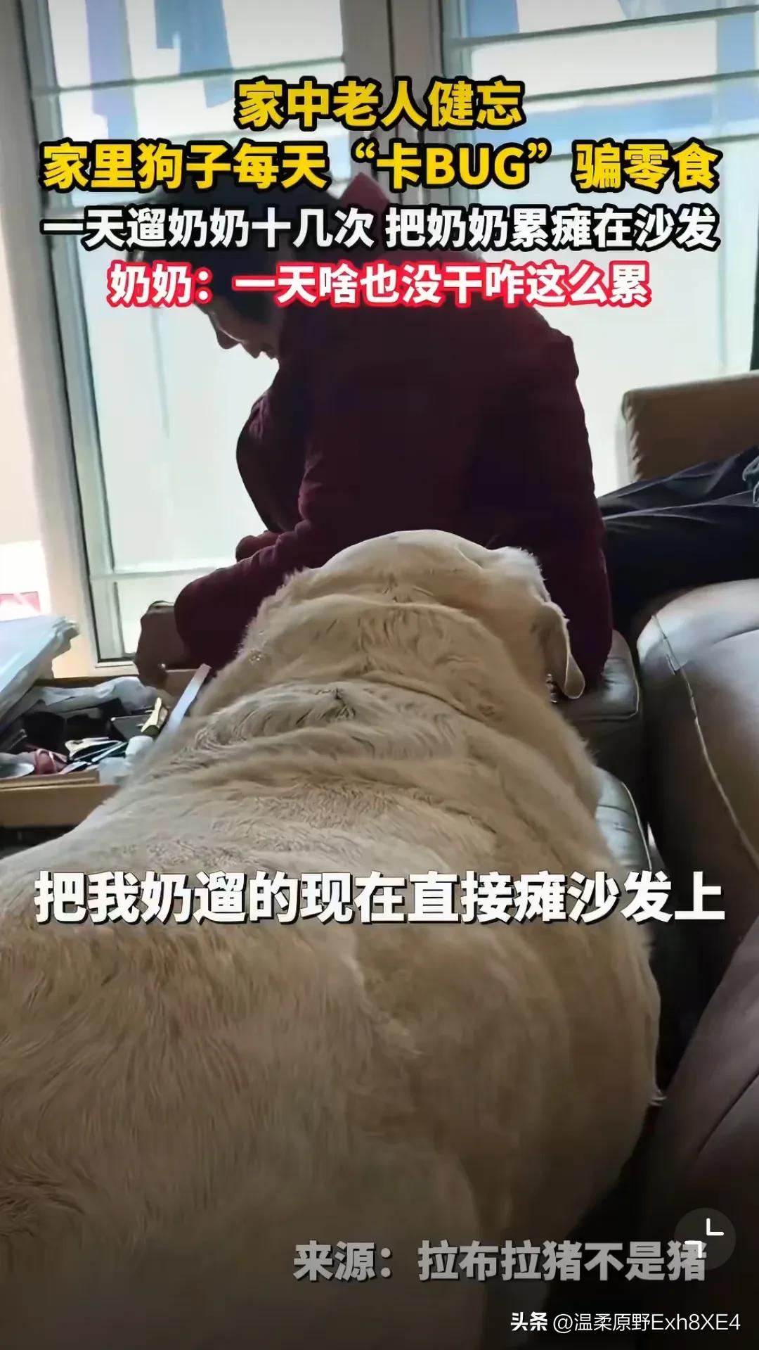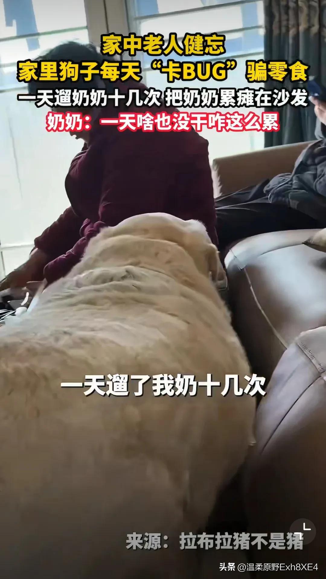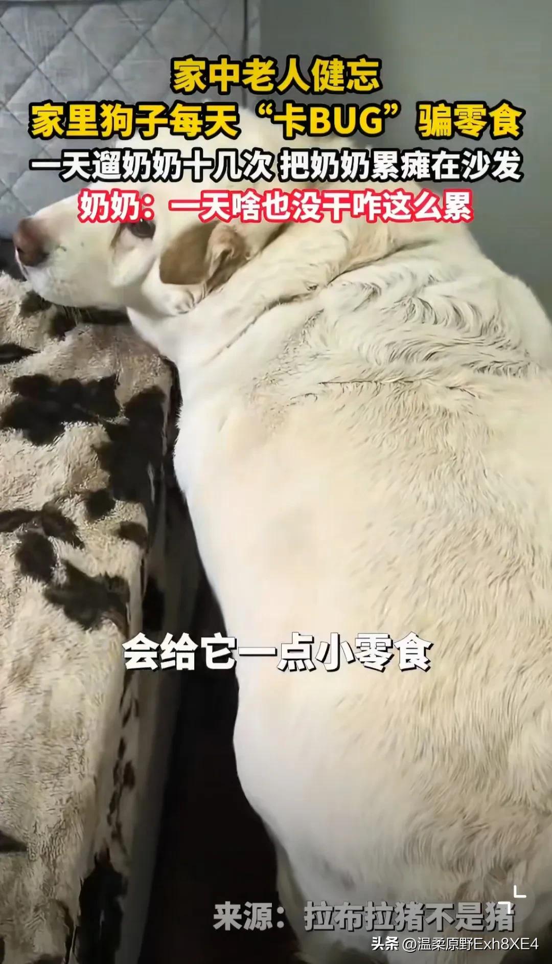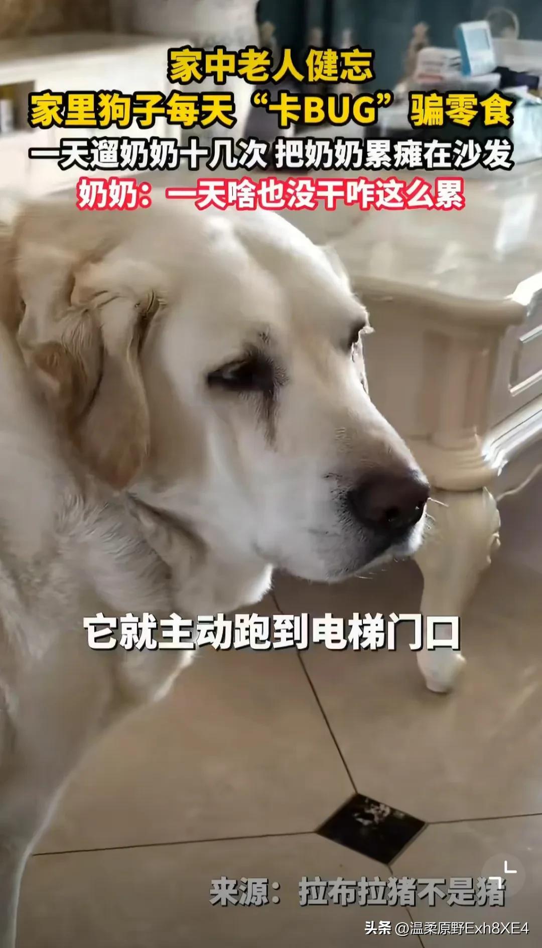 哈哈哈哈哈,真狗啊!一位八旬老太,记性不好了,她家狗子好似发现了主人的这个bug。竟为了吃到遛弯后主人给的小零食, 隔一会儿就跑到电梯口,朝奶奶叫唤,反复引导奶奶带它出门遛弯! 一天下来,遛了十几次,把奶奶累瘫在沙发上,还纳闷道:“一天没干啥,咋这么累呢?” 最终还是孙子发现了狗狗的“恶行”,将其曝到了网上。 网友:这狗狗怕是成精了,心眼真多!都胖成拉不拉坦克了,还这么贪吃!瞧,还心虚呢[捂脸] 哈哈哈哈,很同情奶奶,被狗遛了十几回[黑线]! 建议奶奶下次遛狗,记账!遛一次,画一道,这样既避免累着,又能防止被狗东西算计[呲牙]!